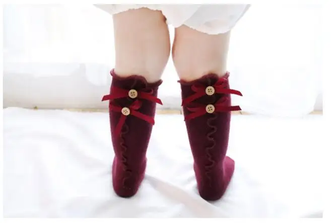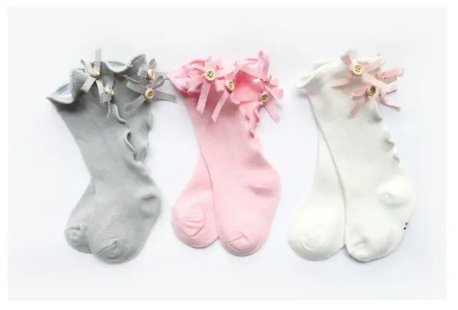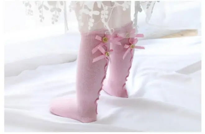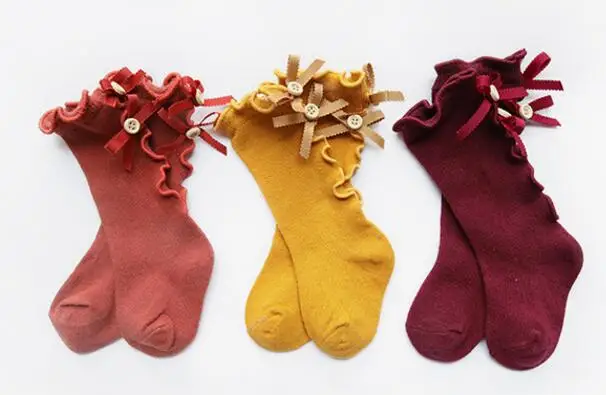 Детские носки для малышей гольфы для маленьких девочек с бантом, черные носки для малышей Хлопковые гольфы теплые детские гетры для девочек, новые кружевные носки с бантом