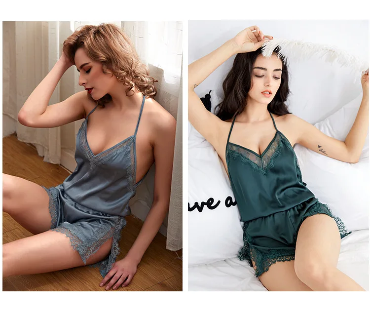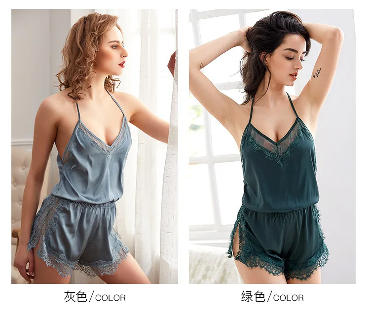 SP & CITY Французский прозрачный пикантный пижамный комплект, Экзотическая одежда для сна, женский комбинезон, ажурная кружевная шелковая атласная ночная рубашка с глубоким v-образным вырезом