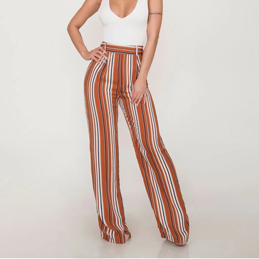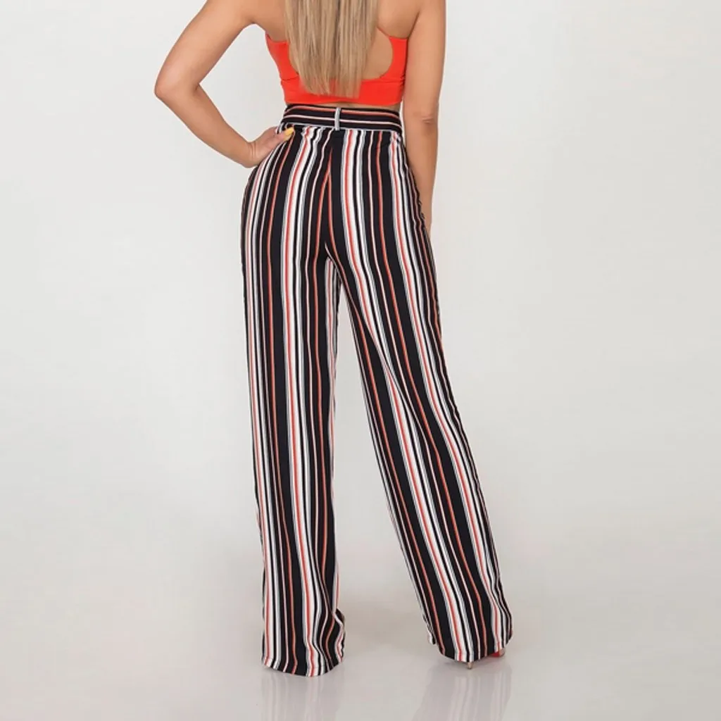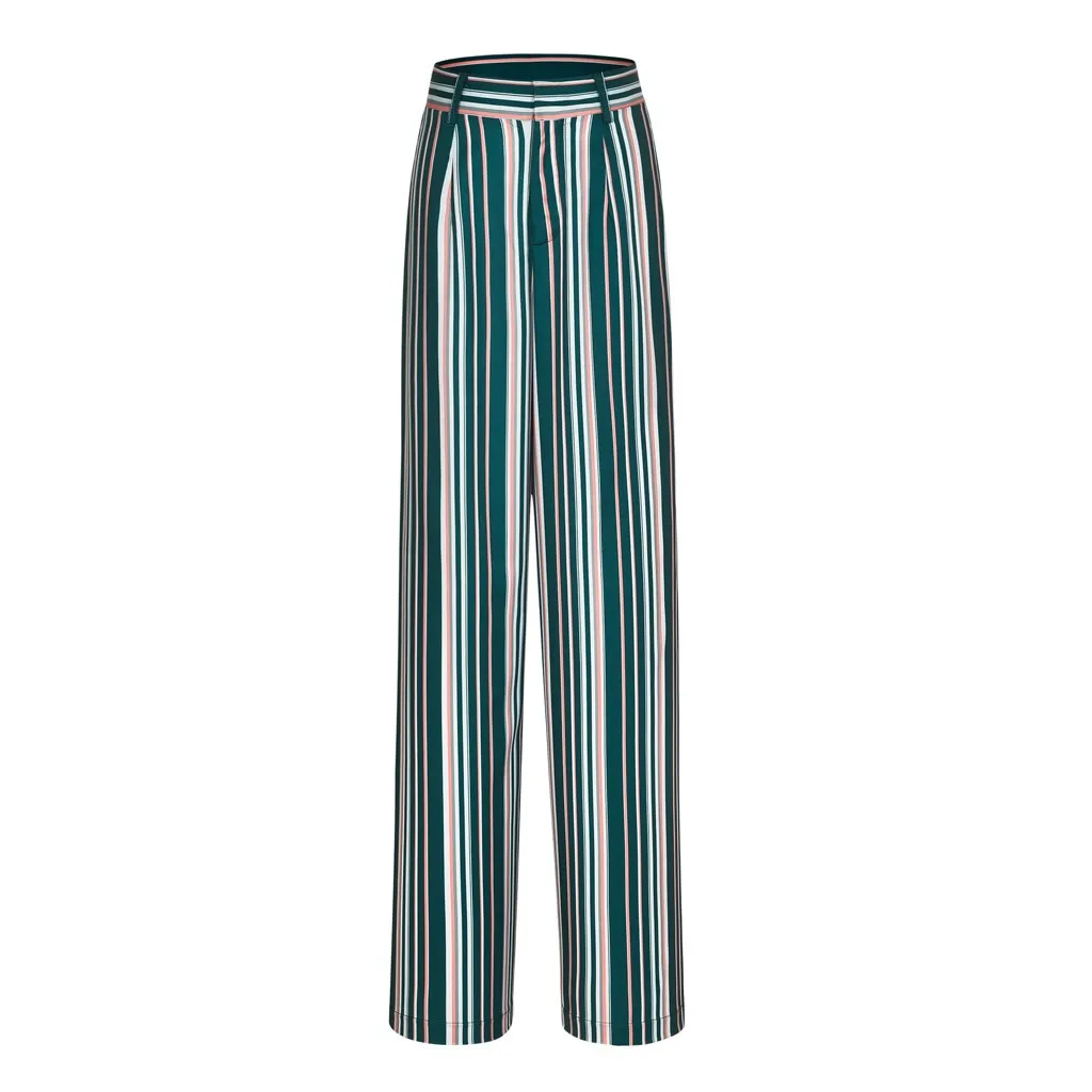 Женские полосатые широкие брюки милые карманы Женские повседневные шикарные свободные брюки