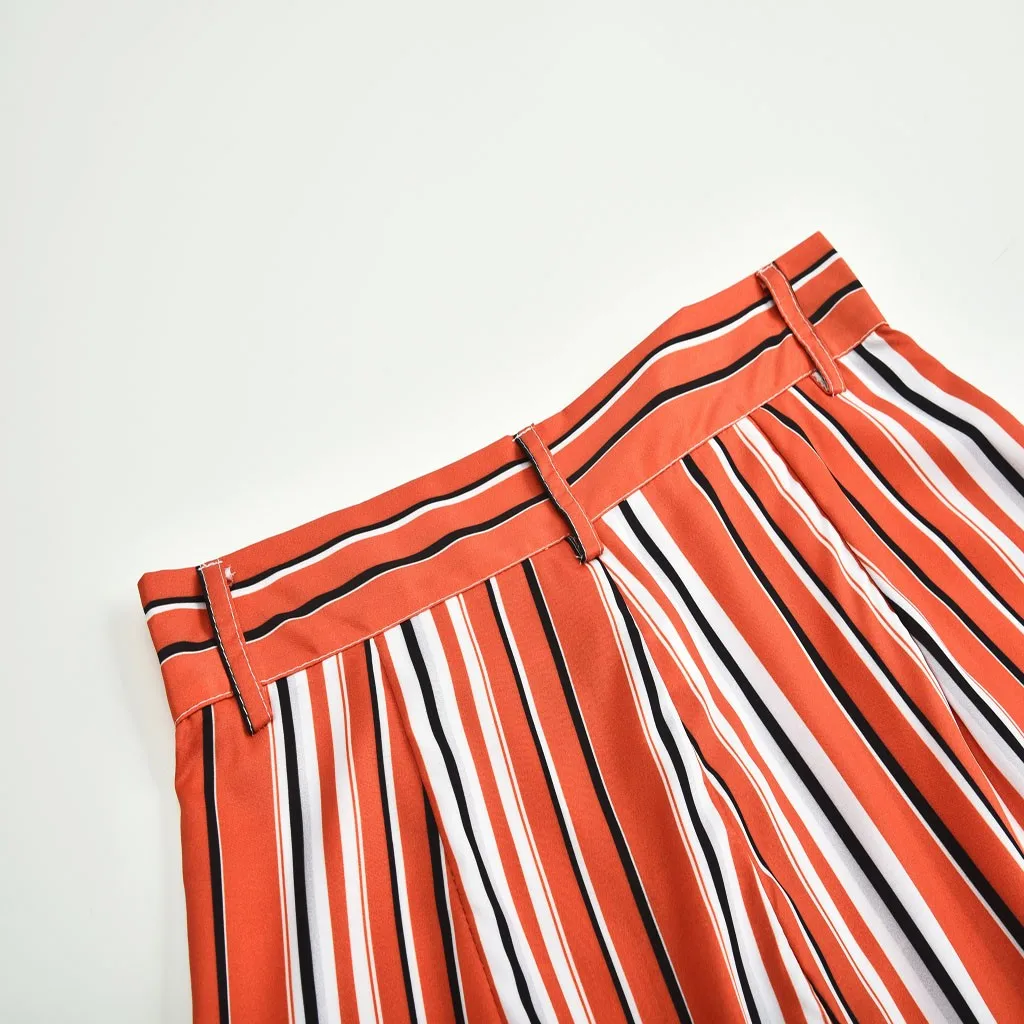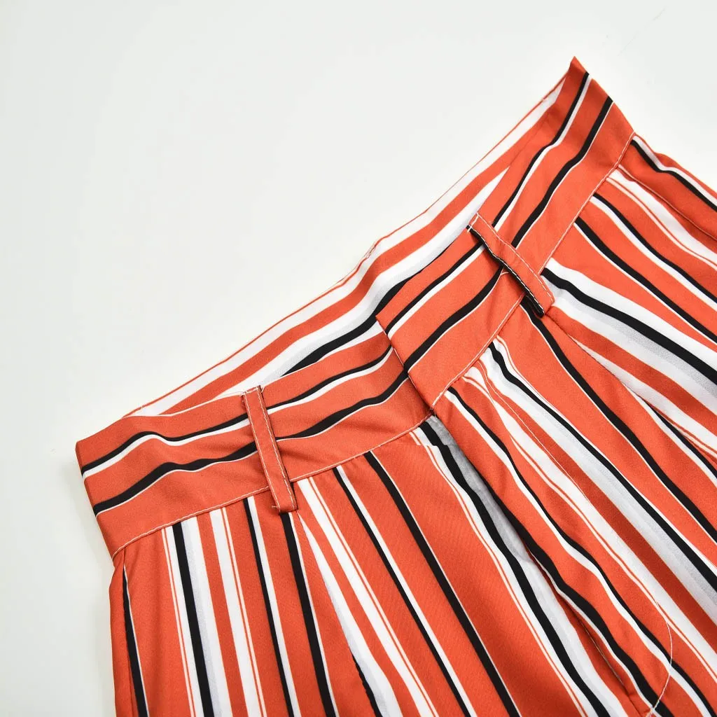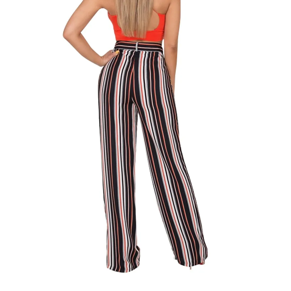 Женские полосатые широкие брюки милые карманы Женские повседневные шикарные свободные брюки