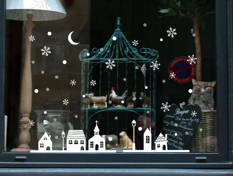 Рождественские украшения для витрин наклейки на стену Рождественские снежинки город