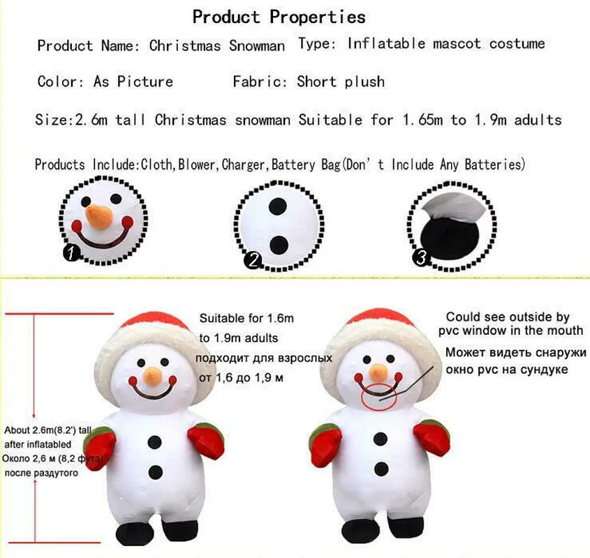 Размер продукта: Высота: около 2,6 м или 3 м в высоту после надувания Подходит для взрослых от 1,65 до 1,9 м Набор изделий:Одежда и воздуходувка, зарядное устройство (требуется использовать 2 батареи 12 В, не включающие батарейки). Упаковка: 60x60x60 см Вес: Около 6 кг Время доставки:Обычно требуется от 7 до 10 дней, поэтому Доставка осуществляется через ems через 7-10 дней после получения оплаты!Подходящий диапазон: Компания, бар, клуб, выпускной вечерние, парк, телевизор, супермаркет, сеть, гостиничная сеть, ежегодное собрание, карнавал, церемония открытия, свадьбы и т. д