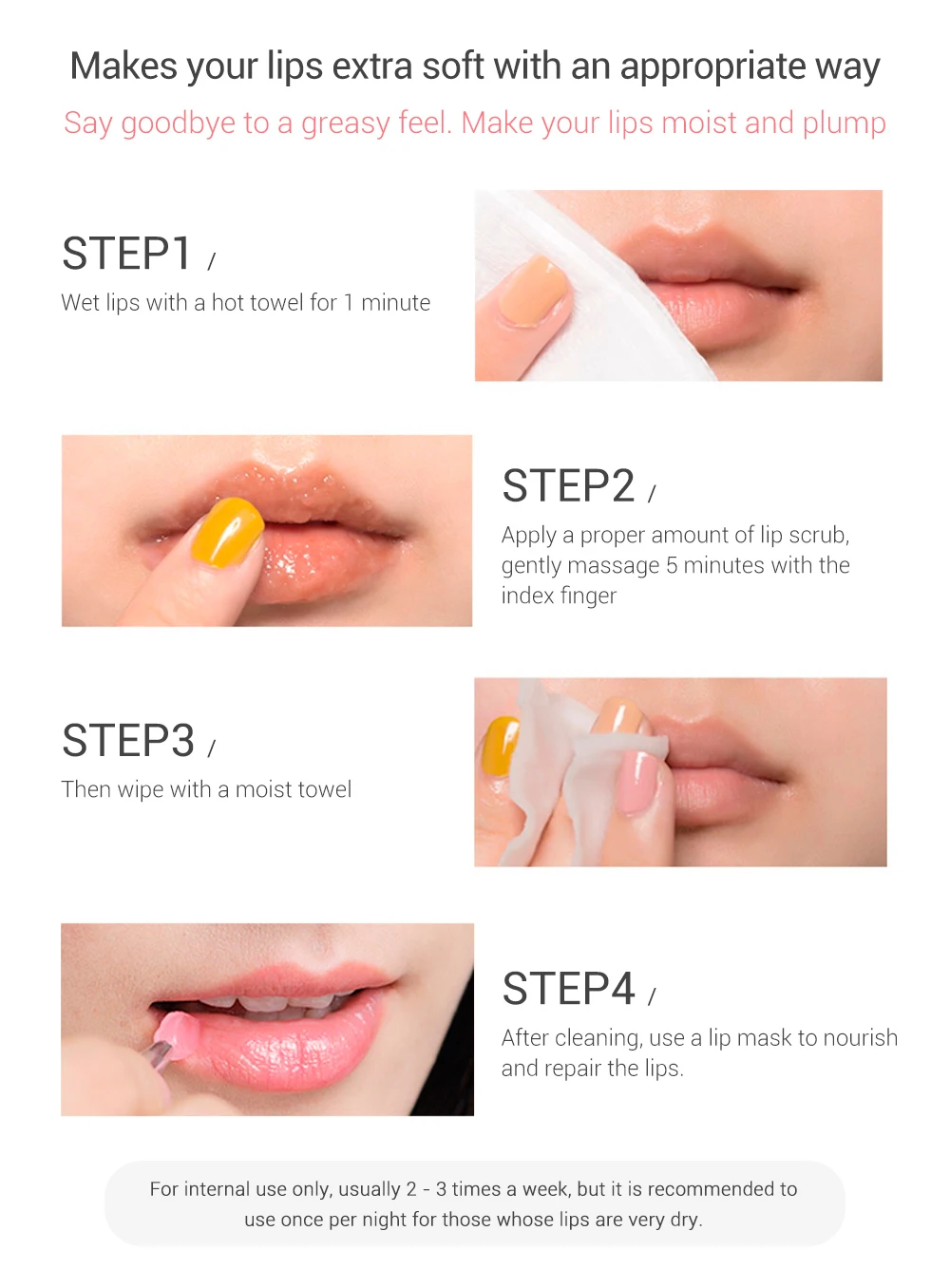Только для внутреннего использования, обычно 2 - 3 раза в неделю, но рекомендуется использовать один раз в ночь для тех, чьи губы очень сухие.