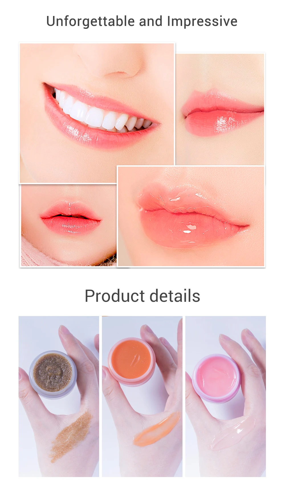Содержит натуральные сладкие orange экстракт и различные растительных экстрактов, придает губам питательных веществ, которые глубоко питает кожу губ, смягчает кожу на кератиновых пластинах, улучшает губы сухость и шелушения, уменьшает, стирает линию губ, делает губы становятся гладкой, упругой, пухлыми и эластичность.