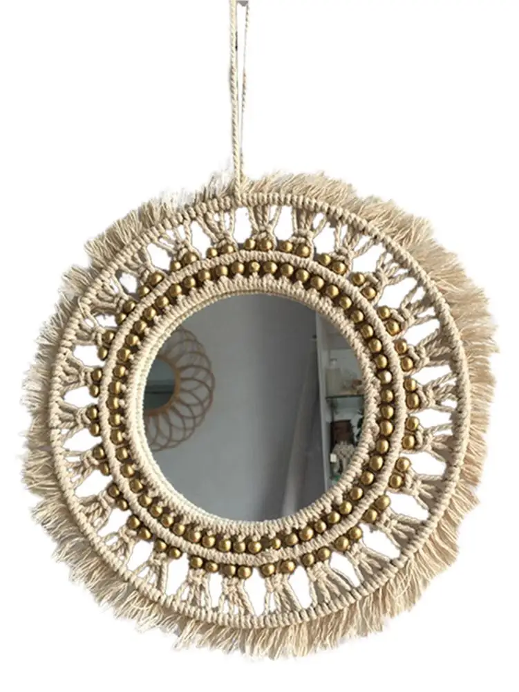 1. Материал высокого качества: хлопок и хлопок. Зеркало с тканой формой, без потери полезности и красоты. Это идеальный подарок для ваших богемных друзей. Обратите внимание-на поверхности зеркала есть защитная пленка, пожалуйста, порвите ее перед использованием, чтобы обеспечить ее высокую четкость.