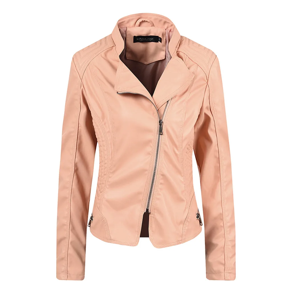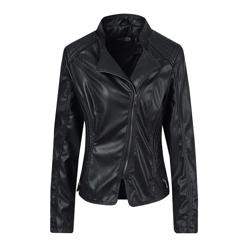 Женская кожаная куртка на молнии с отворотом, парка, пальто, Байкерская верхняя одежда