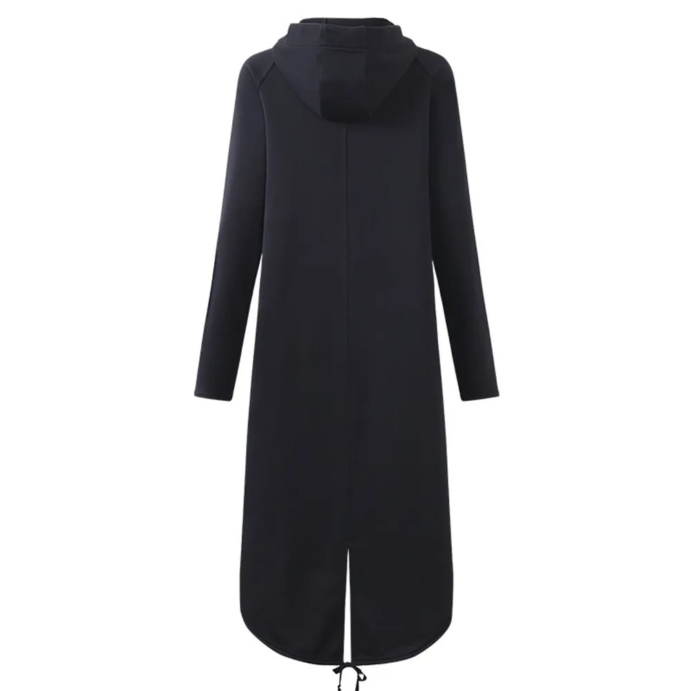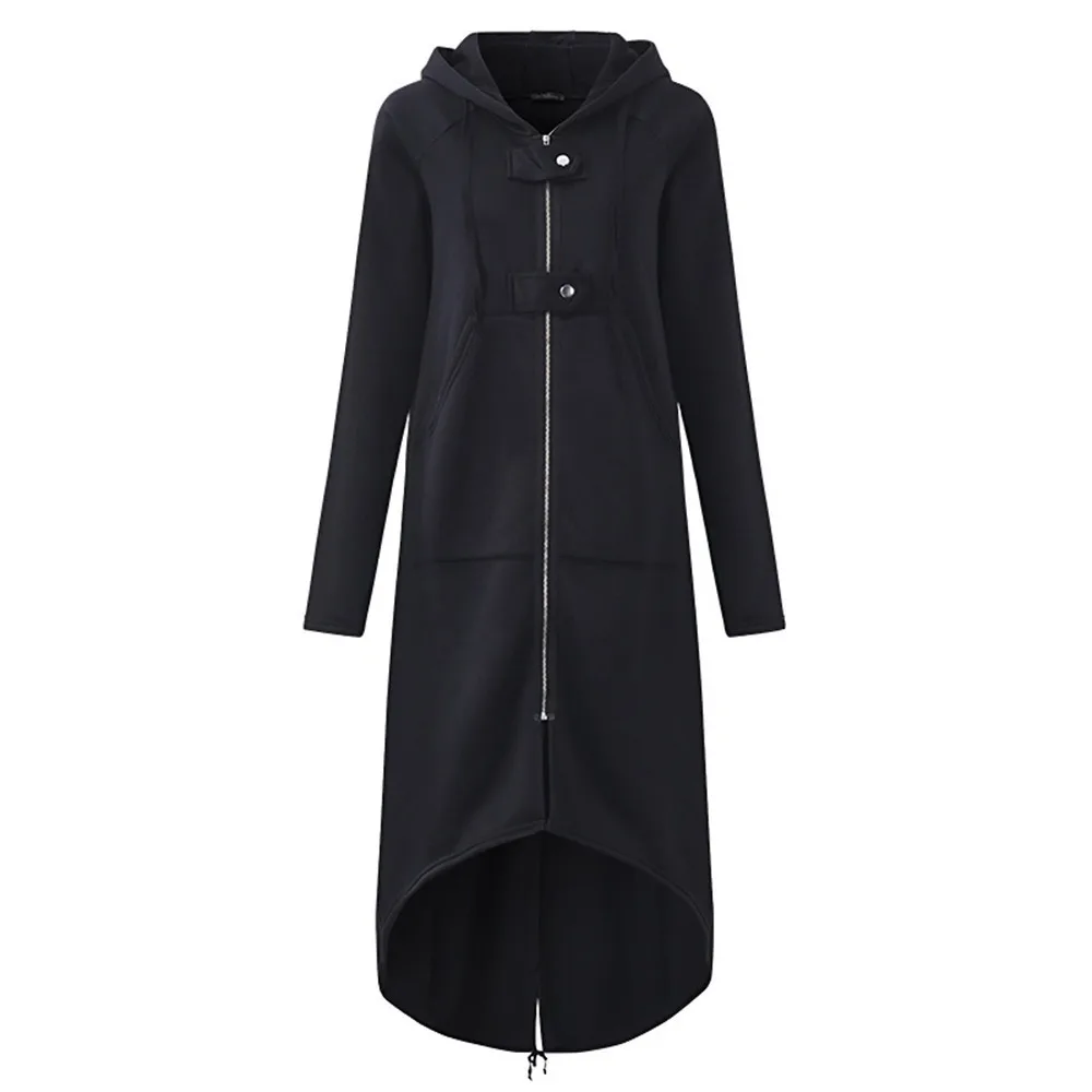 Женская модная куртка с капюшоном, длинный рукав, длинное однотонное пальто с карманом