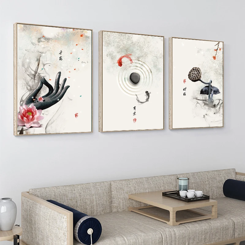 Новинка, китайские чернила, цветы лотоса, Будда, ручная работа и рыба, настенная Художественная печать, картина, холст, художественная живопись, постер для гостиной, без рамки