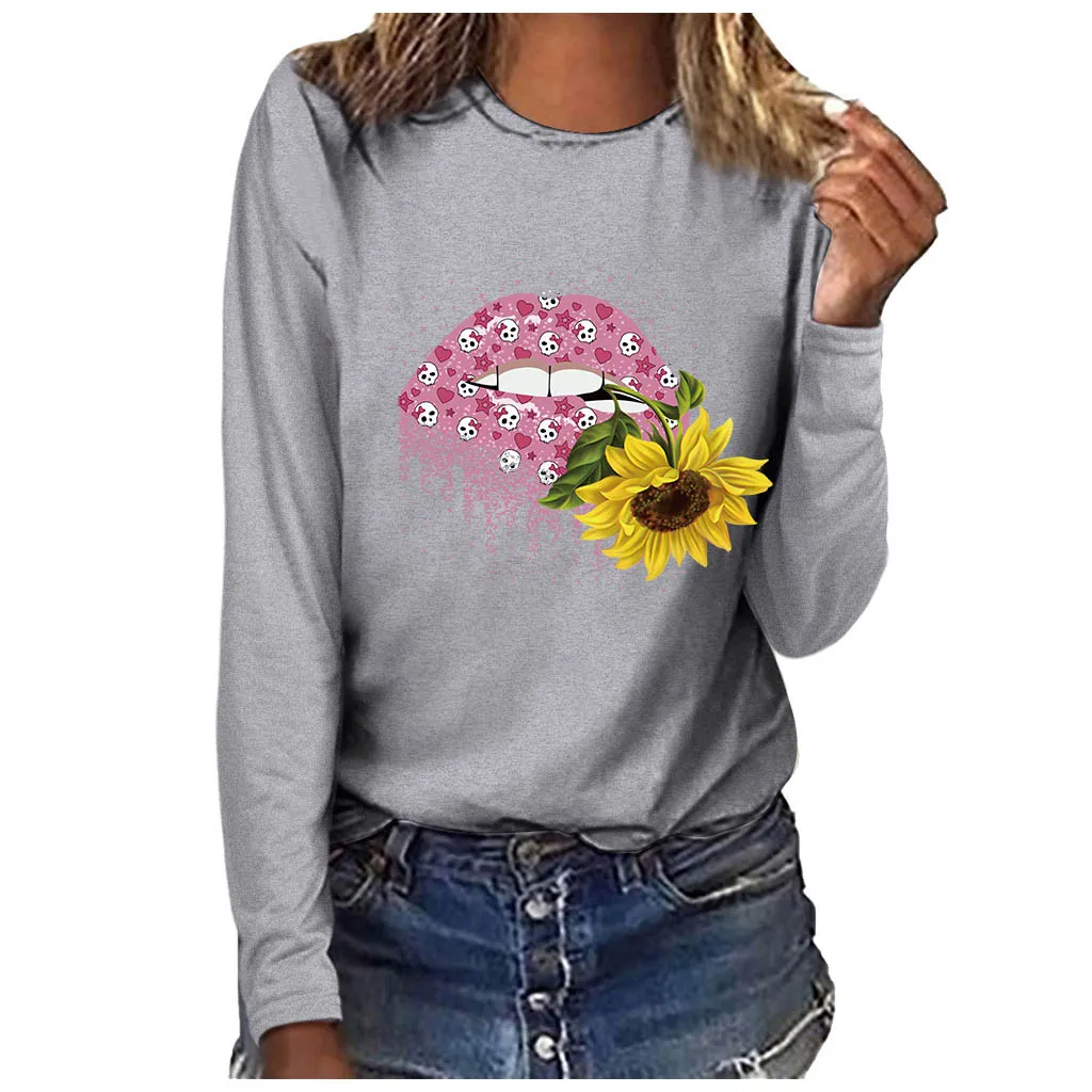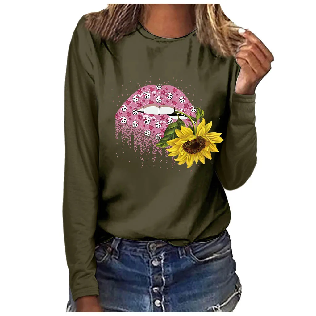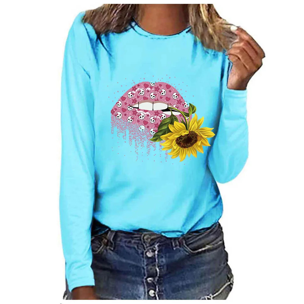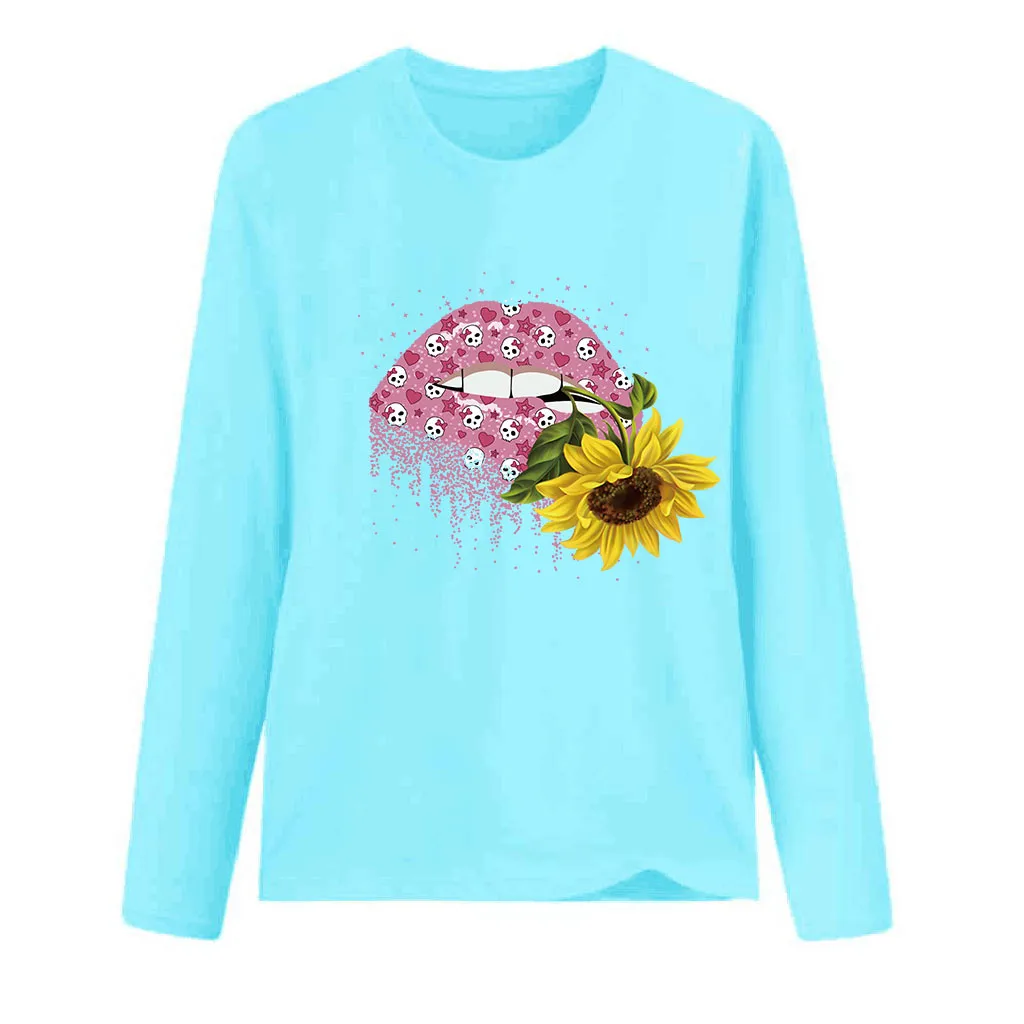 Женская мода плюс размер круглый вырез с длинным рукавом Футболка Блузка Топы Особенности: