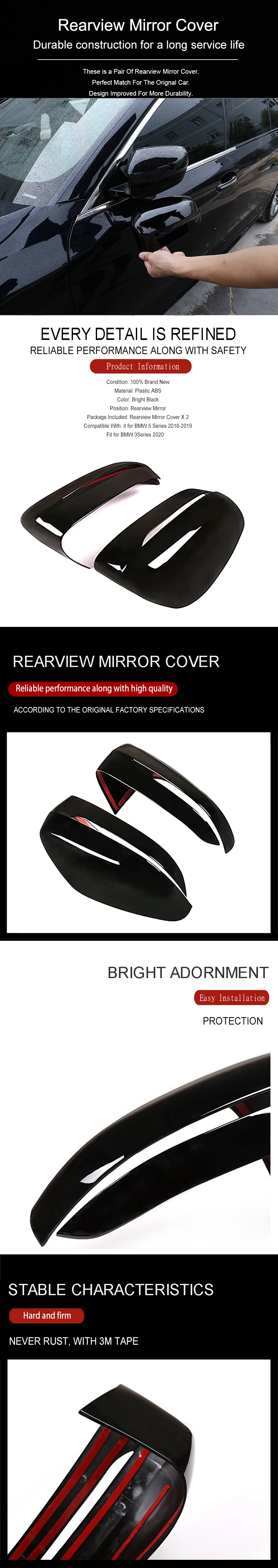 Wooeight 2Pcs Bright Black Car Side Rearview Mirror Cover Cap Trim Fit for BMW 5 Series 2018 2019 Fit for BMW 3 Series 2020