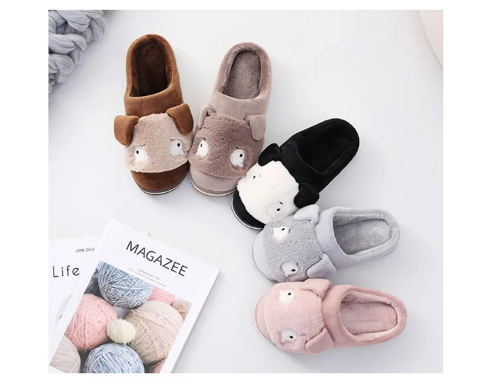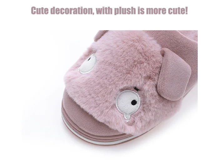 Fashion Cute Winter Slippers Women Indoor Cartoon Slipper Sildes Soft Sole House Plush Shoes Dog Ear Cotton Slippers Plus Velvet