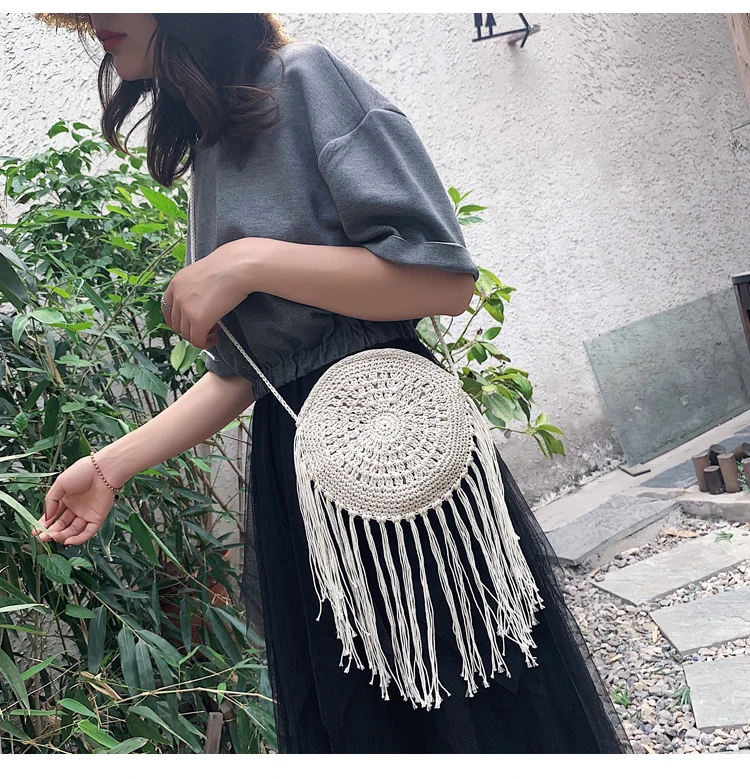 Круглая соломенная сумка, Женская плетеная Сумка из ротанга, женская летняя плетеная Сумка через плечо, ручная работа, тканая сумка, Bolsos Mujor