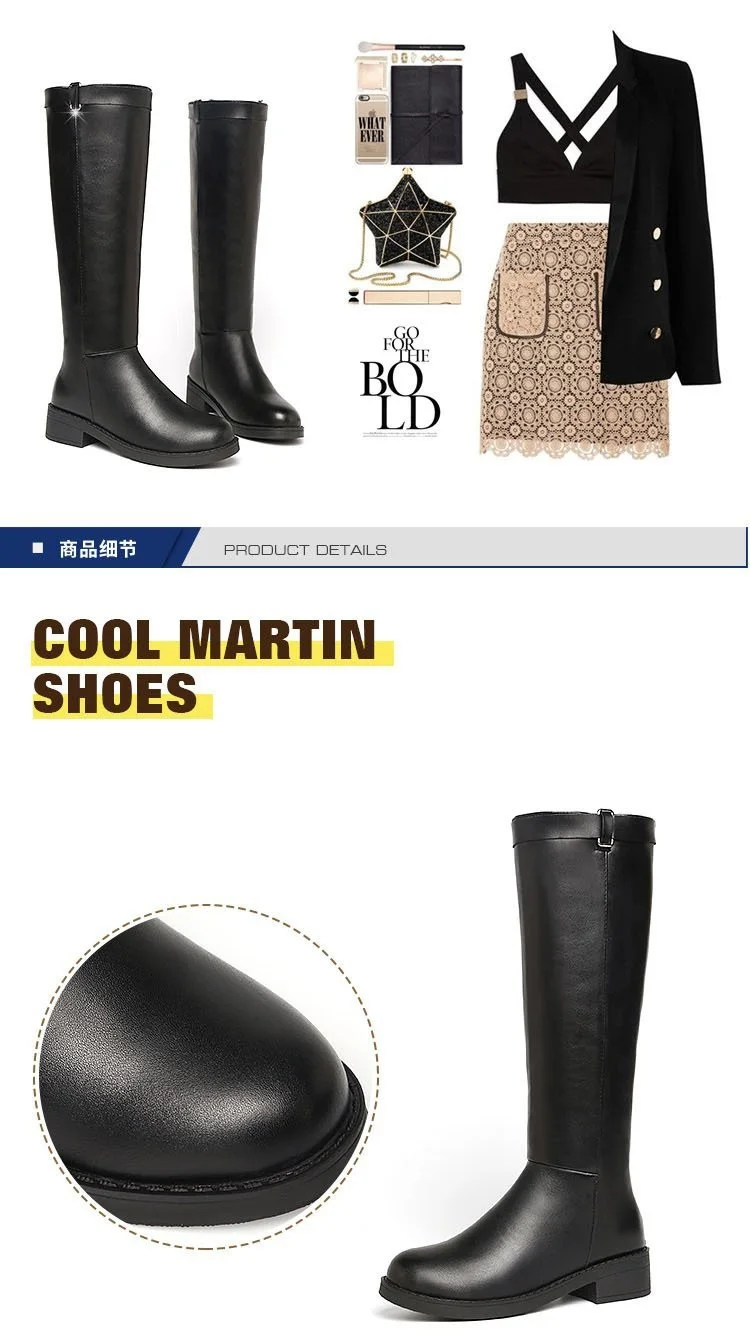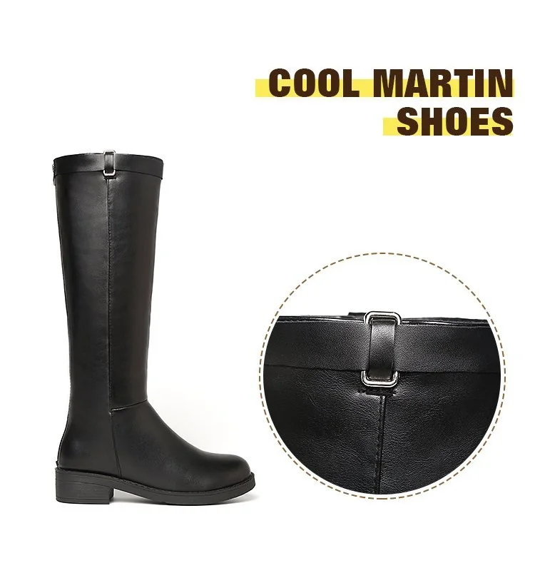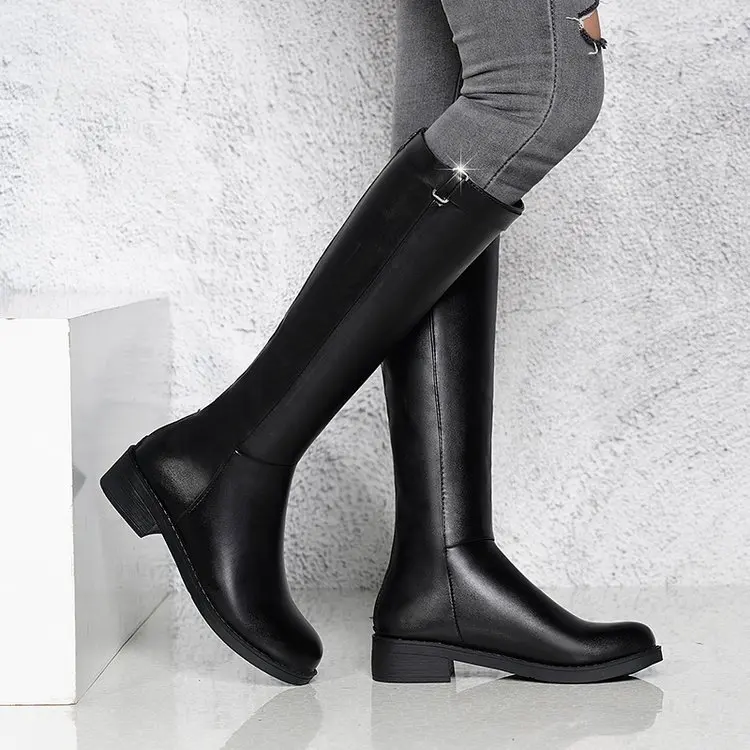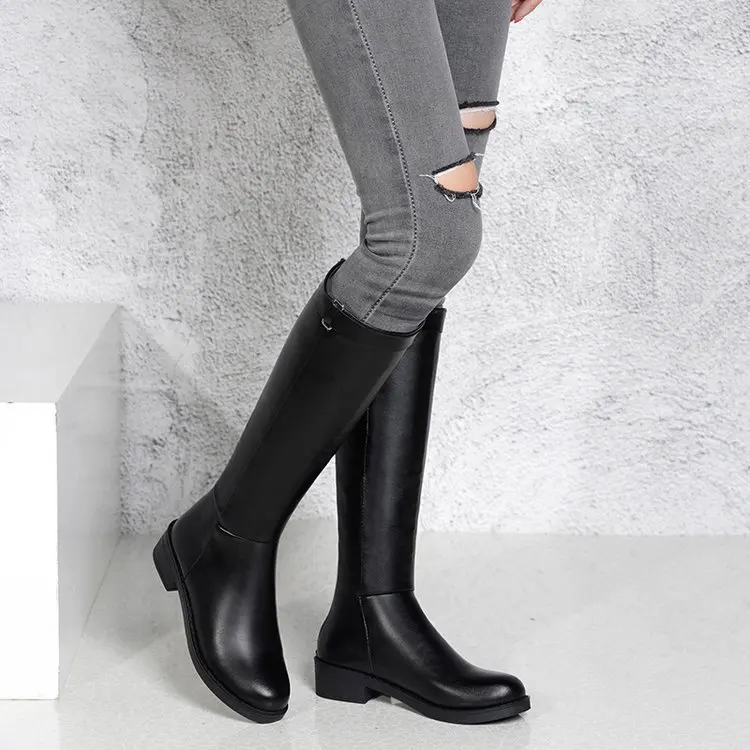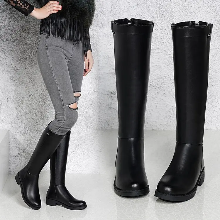 Женские сапоги до середины икры; коллекция 2020 года; зимние сапоги; женские сапоги до середины икры с круглым носком на молнии; кожаные сапоги на низком каблуке; Botas Mujer