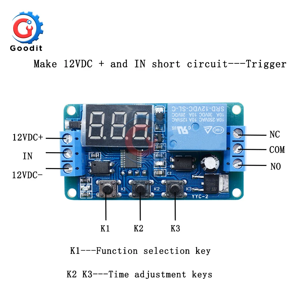 Описание: Рабочее напряжение: DC12V (нормальное рабочее напряжение DC10V-16V) Источник: DC4V ~ 20V (обычно источника питания положительный триггер, кнопка, датчик PNP, сигнал ПЛК и т. д.) Выход возможности: может регулировать временной промежуток устройств в 30v5A или в 220v5A Потребляемый ток: 20mA, рабочий ток: 50mA Услуги срок службы: Более 100000 раз; Рабочая температура: -40 ~ 85 °C; Вес нетто: около 26 г Размеры: 64,2 мм * 34,8 мм * 18,5 мм Особенности: Входное напряжение анти-обратная цепь, Беззаботная проводка. Изоляция оптопары входного сигнала, сильная способность анти-помех. Установите параметр для отключения постоянной памяти. Функция Введение: P-1: сигнал запускает реле для включения. Когда время включено, реле отключено во время задержки. A: Недопустимый триггер снова B: Повторный триггер повторный запуск C: триггер релейный сброс снова для остановки времени P-2: сигнал запуском временной интервал T1, время до реле pull-вовремя T2 отключен (сброс) A: Недопустимый триггер снова B: Повторный триггер повторный запуск C: Запуск задержки без включения питания P-3: езда на велосипеде: Включение T1, отключение T2, бесконечная петля. Для T1 и T2, время регулируется; В том случае, если параметр включен или выключен, он может быть включен или питание включено. A: реле включается сразу после включения питания. B: реле выключен, а затем включается после включения питания. P-4: у этого товара есть сигнал, реле закрыто, всасывания держится, сигнал исчезает, время начинается, время заканчивается, реле отключено, во время задержки сигнал приведен снова, то такая задержка отменяется, реле, сигнал исчезает, И время повторно по времени. Посылка включает в себя: 1 шт х DDC-331 DC 12V цикл запуска время реле задержки таймера светодиодный цифровой Дисплей Регулируемый зубчатый Управление Реле переключения с Чехол