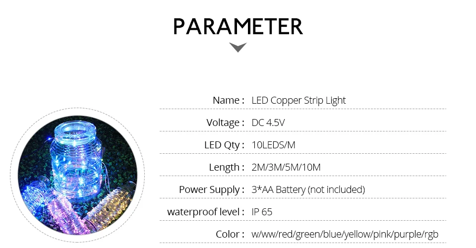 Особенности: * Высокая яркость, низкое энергопотребление * Наружный и внутренний декоративный светильник * Изготовлен из высококачественного материала, прочный для ежедневного использования * Очень низкий нагрев, кроме экономии энергии на светильник * Экономия энергии и не вредит экологии. * Длительный срок службы: более 100000 часов. * Безопасный и экологически чистый, без излучения или элементов загрязнения. * Светильник ваш праздник вечерние со на экране одни мигающие гирлянды светильник s * Яркие сказочные огни для украшения вашего Рождества, свадьбы, вечерние, фестивальные и т. Д. Параметры: * Цвет шнура: Прозрачный * Режим работы: устойчивый * Светильник Цвет: красный/зеленый/синий/белый/теплый белый/фиолетовый/RGB (красный-зеленый-синий). • Питание: 4,5 V 3 * AA (не включены) Батарея приведенный в действие/CR2025 Батарея приведенный в действие/LR44 Батарея питание (не прилагаются Батарея) * Светодиодный Количество: 10 светодиодный s/ 15 Светодиодный s/ 20 светодиодный s/ 30 светодиодный s/ 50 светодиодный s/ 100 светодиодный s * Длина: 1 м/1,5 м/2 м/3 м/5 м/10 м * Водонепроницаемый уровень: IP65 Водонепроницаемый * Материал проволоки: мягкий пластиковый канат, мягкий и гибкий, шпагат в любом месте, которое вы можете себе представить