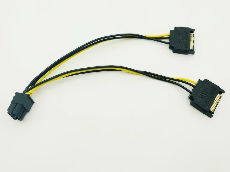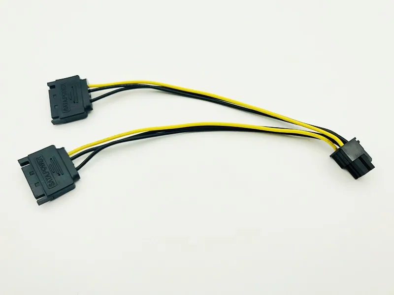 1. Для случая, когда нет или в отсутствии портов питания 6 pin видеокарты; С этим кабелем, вы можете превратить двойной порт питания SATA 15pin в порт питания Видео 6 pin для увеличения тока видеокарты;