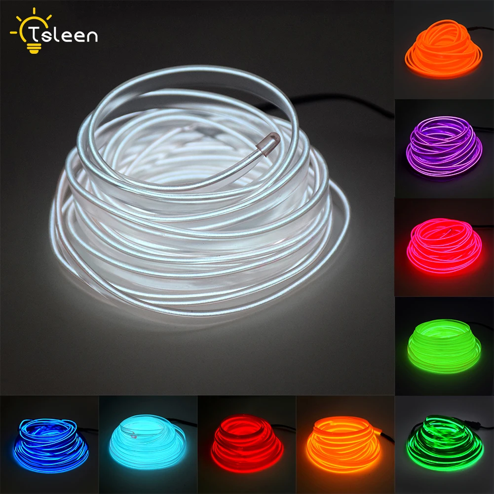 2 м 5 м EL провод с 7,5 мм швейной кромкой Гибкая неоновая лампа светящаяся веревка трубчатый кабель светодиодный светильник для украшения автомобиля водонепроницаемый