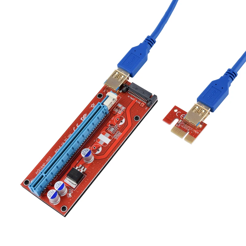 10 шт. Riser 008 красная плата 3 светодиодный PCI Express Riser Card PCI-E 1x до 16x удлинитель адаптер карта USB 3,0 кабель для Шахтерская машина