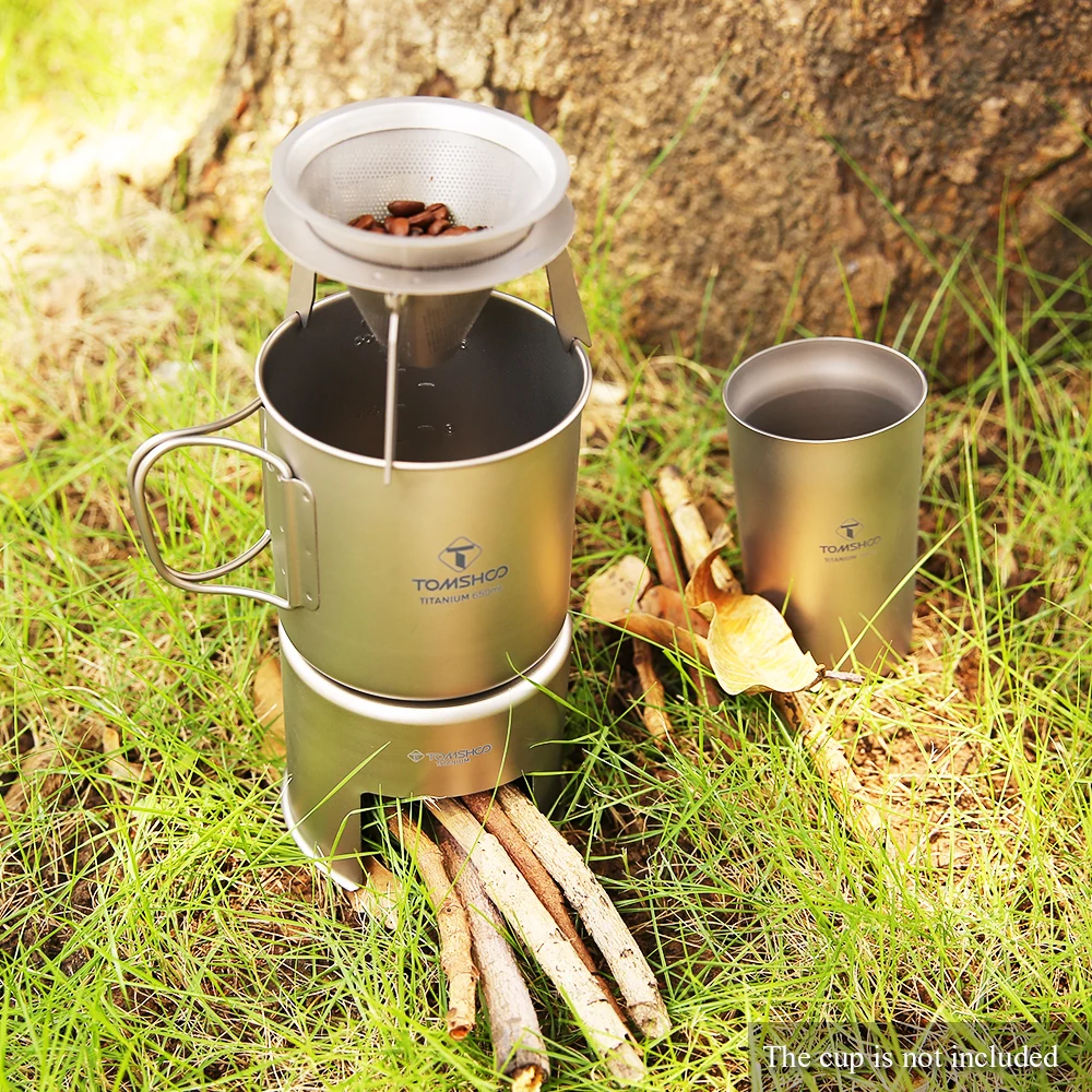 Этот набор посуды для кемпинга включает в себя походную плиту, которая прочно изготовлена из титанового материала, очень прочный светильник. Плита имеет широкое отверстие для легкого добавления дерева, вентиляционных отверстий для эффективного горения, что делает эту печь для кемпинга необходимой кухонной утварью для вашего альпинизма, пешего туризма, кемпинга и других видов активного отдыха.