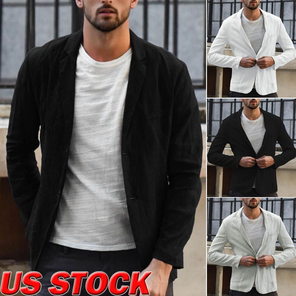 Мужская приталенная куртка из хлопка, повседневная льняная куртка с воротником, верхняя одежда