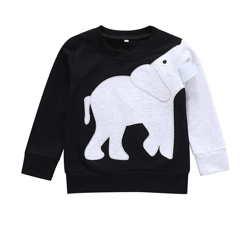Одежда для маленьких мальчиков и девочек, блузка слон, топы, толстовка, футболка