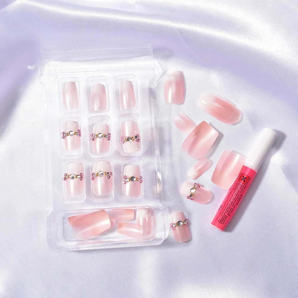 Посылка включает в себя: 1 комплект (24 шт.) x накладные ногти (клей для ногтей входит в комплект.)