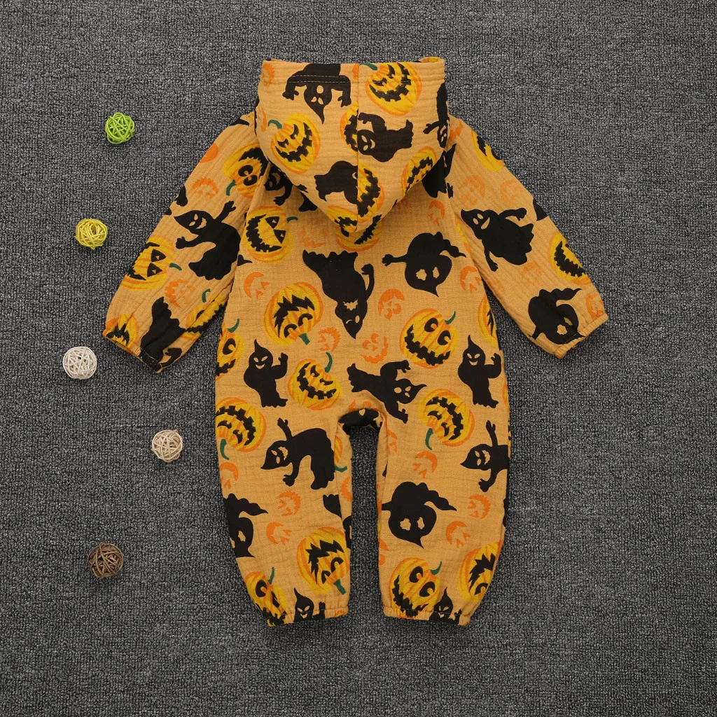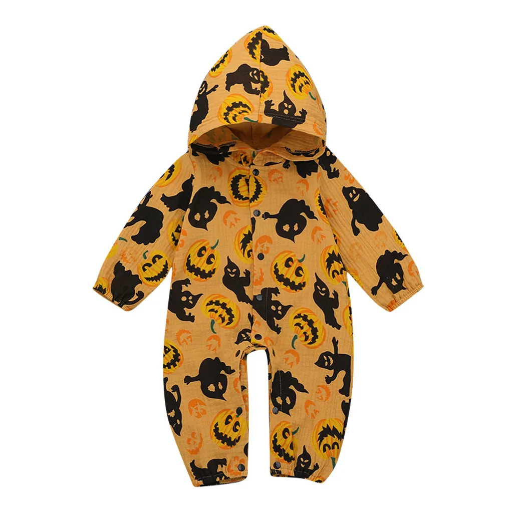 Комбинезон с капюшоном для новорожденных мальчиков и девочек на Хэллоуин, комбинезон с изображением тыквы
