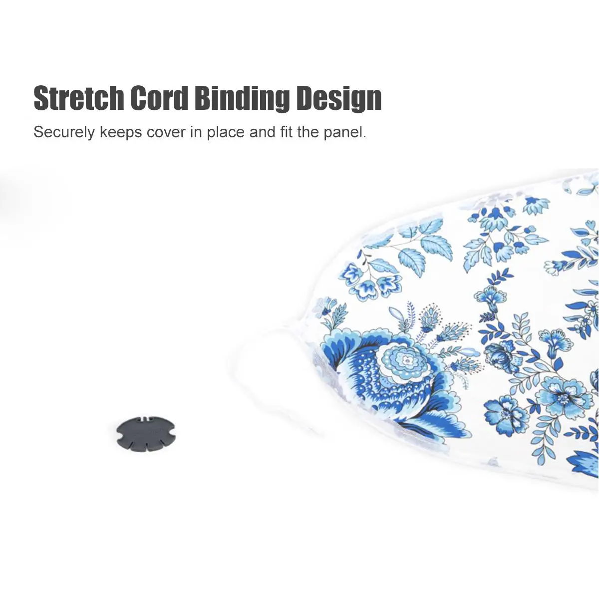 -Размер крышки составляет приблизительно 113x45 см (44,5 × 18,1 дюйма) и подходит для гладильной доски размером 100x33 см (39,4 × 13 дюймов).