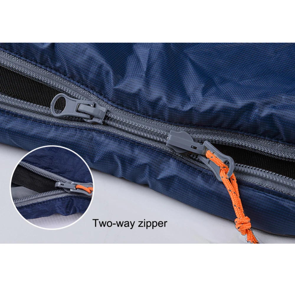 -Двойная открытая молния, вы можете легко застегивать/расстегивать внутри или снаружи спального мешка.