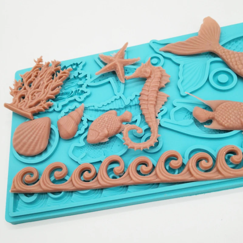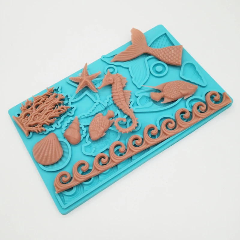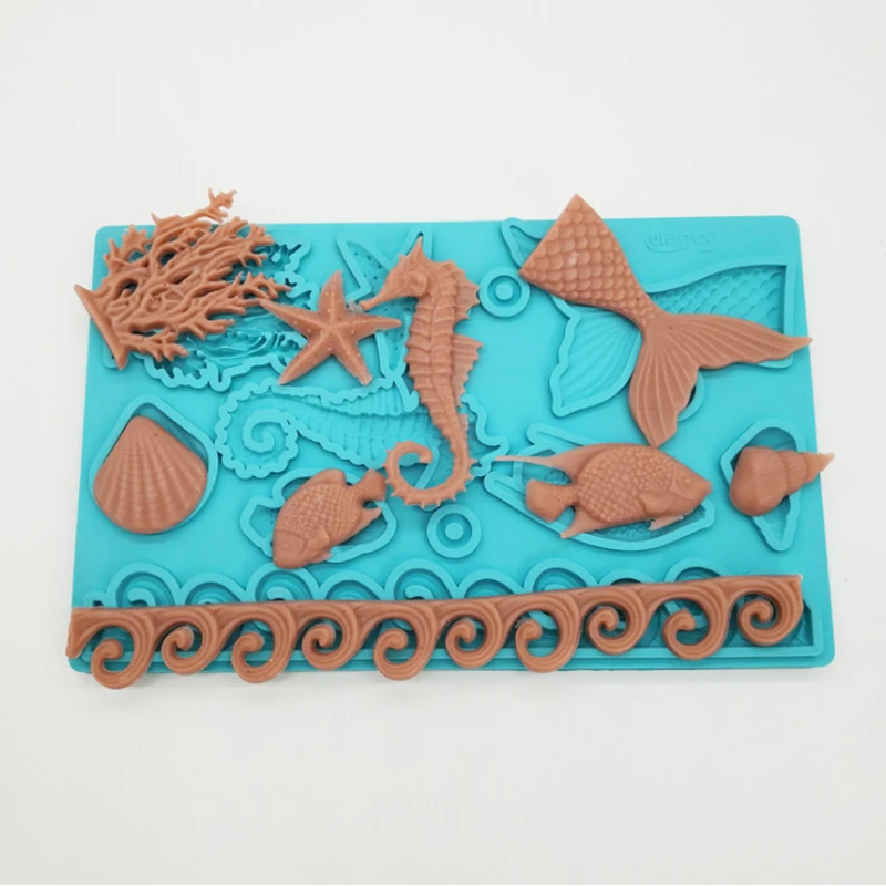 Океаническая волна морская лошадь рыбы кораллы, морские звезды силиконовые формы помадка формы украшения торта инструмент Gumpaste сахарный шоколадный формы