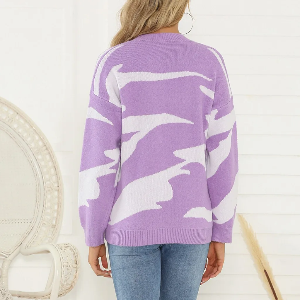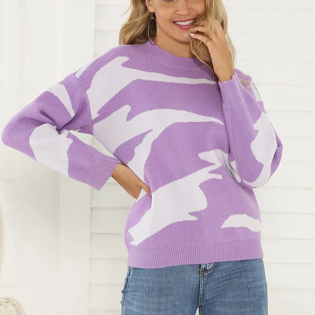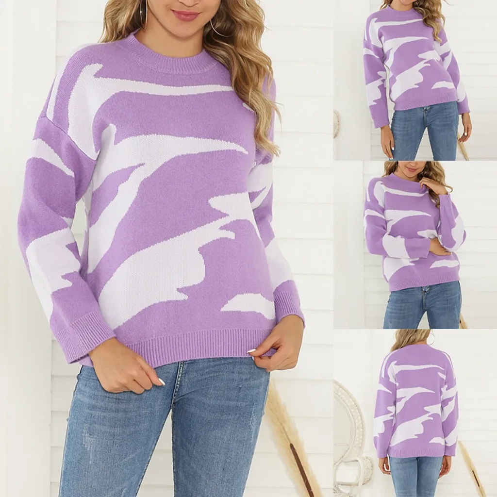 Женский Повседневный пуловер с круглым вырезом и длинным рукавом с принтом, Свободный вязаный свитер, топы