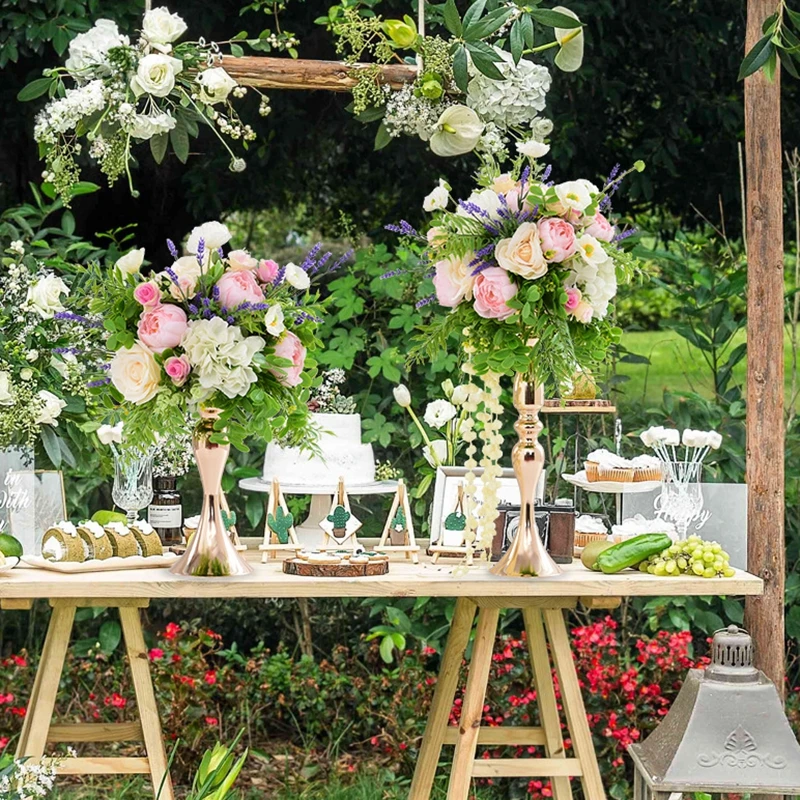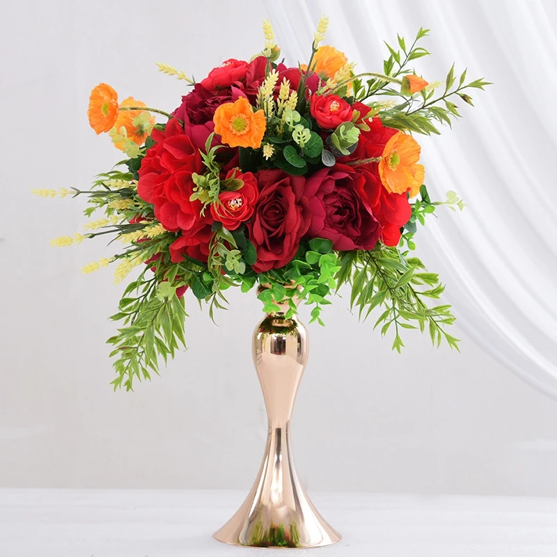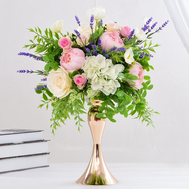Изготовленный На Заказ 35/40 см роза diy шары из искусственных цветов Центральные Декора свадьбы фон Свадебный стол в виде цветочного шара цветов + ваза-подсвечник