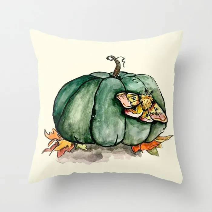 Подушка с изображением тыквы чехол в акварельном стиле, выглядит красиво и модно.