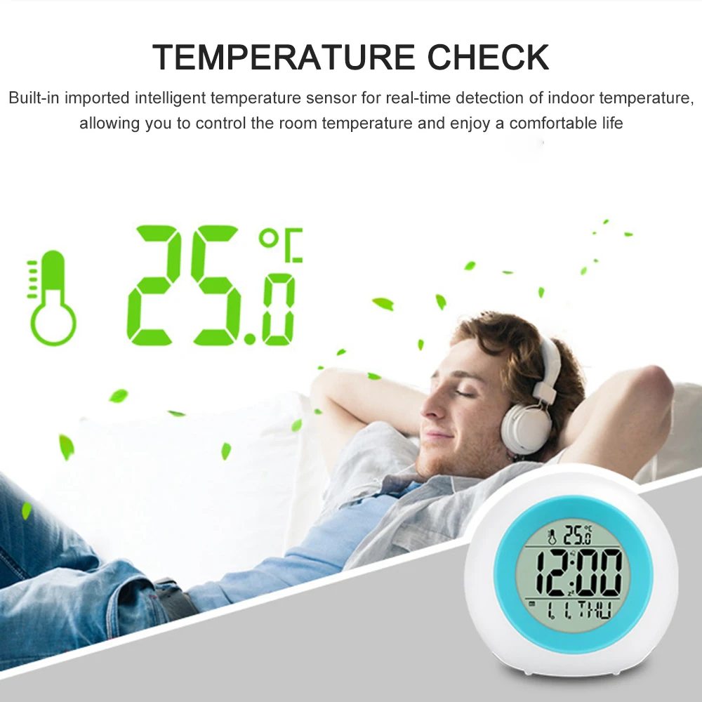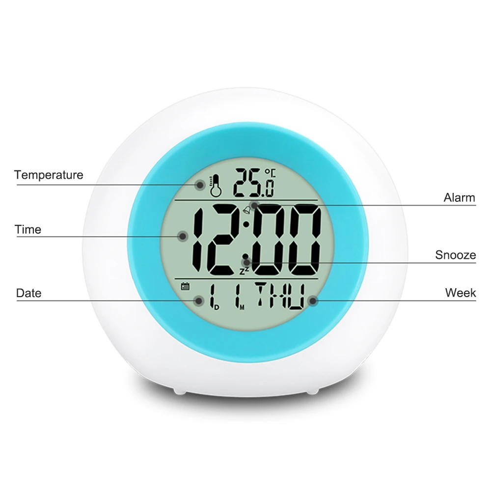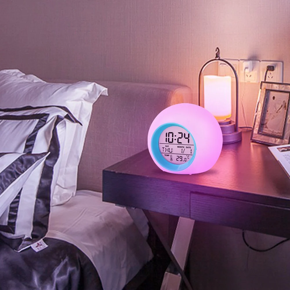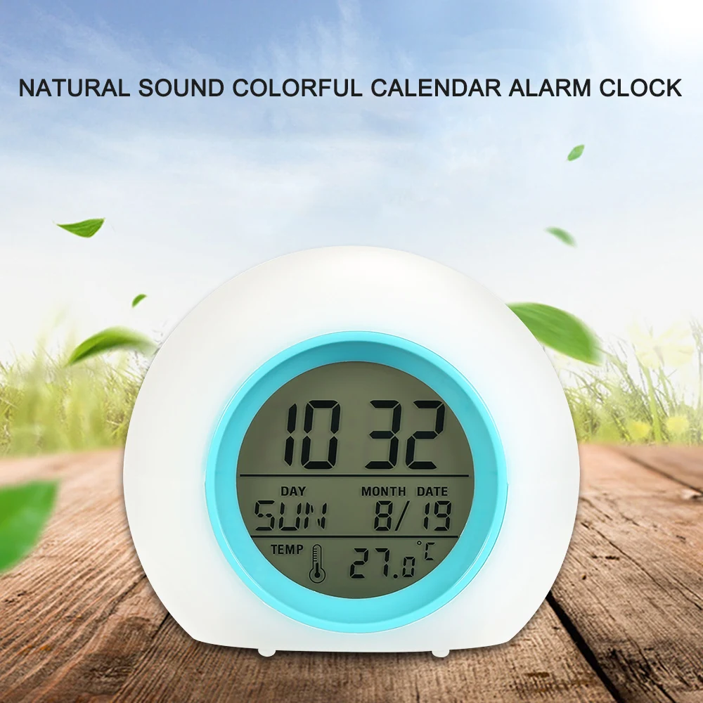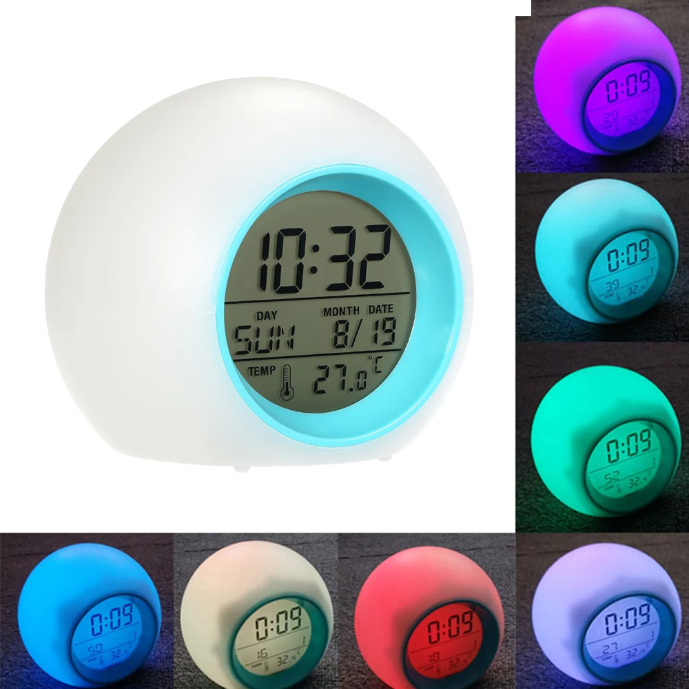 7 цветов цифровой будильник функция повтора сна температурный таймер ночной светящийся светодиодный дисплей часы для спальни ванной комнаты