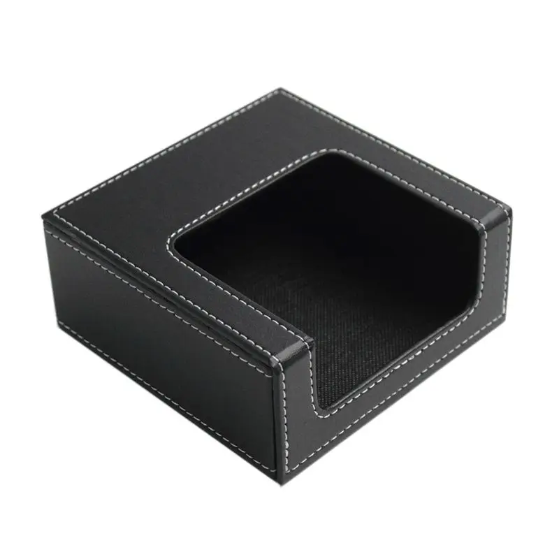 PU Leather Square Cocktail Napkin Holder Paper Serviette Dispenser Tissue Box Bar Caddy for Dining Table Hotel Office Home Decor