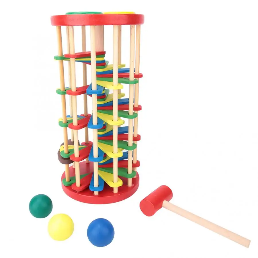 Творческий фунт и рулон Деревянная башня с молотком стук мяч откатной лестницы ящик с молотком раннее образование игрушки для детей подарок
