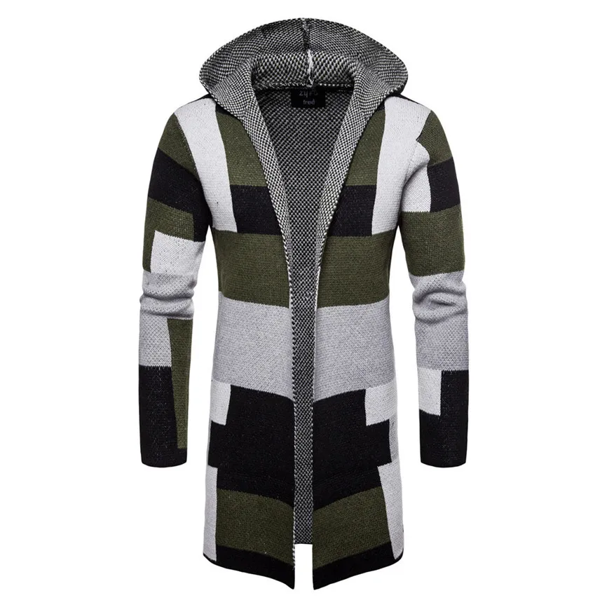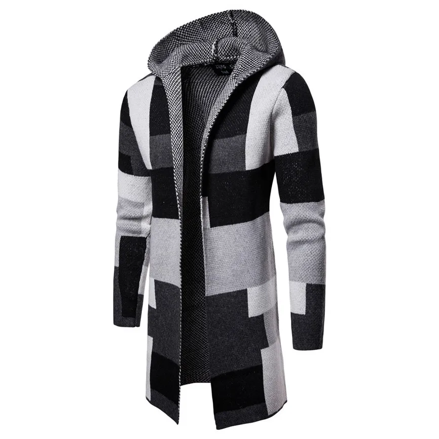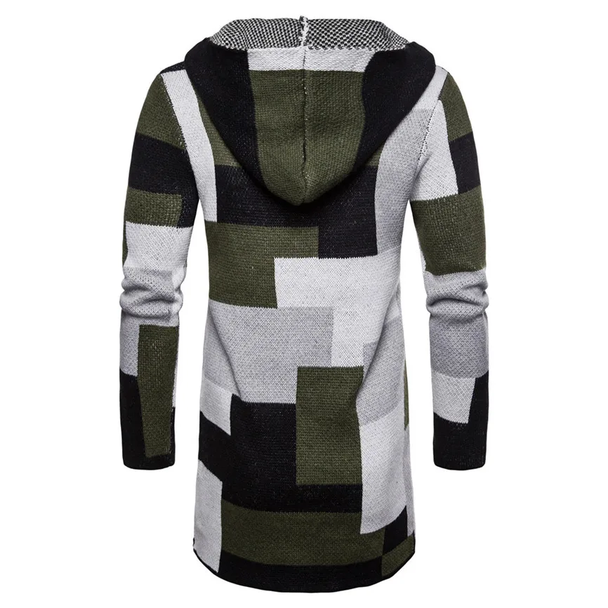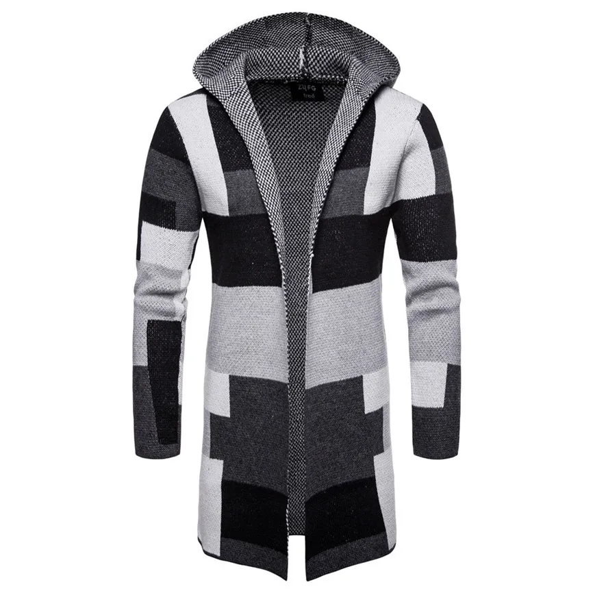 Мужская однотонная трикотажная куртка с капюшоном в стиле пэчворк, кардиган, топы с длинными рукавами, блузка