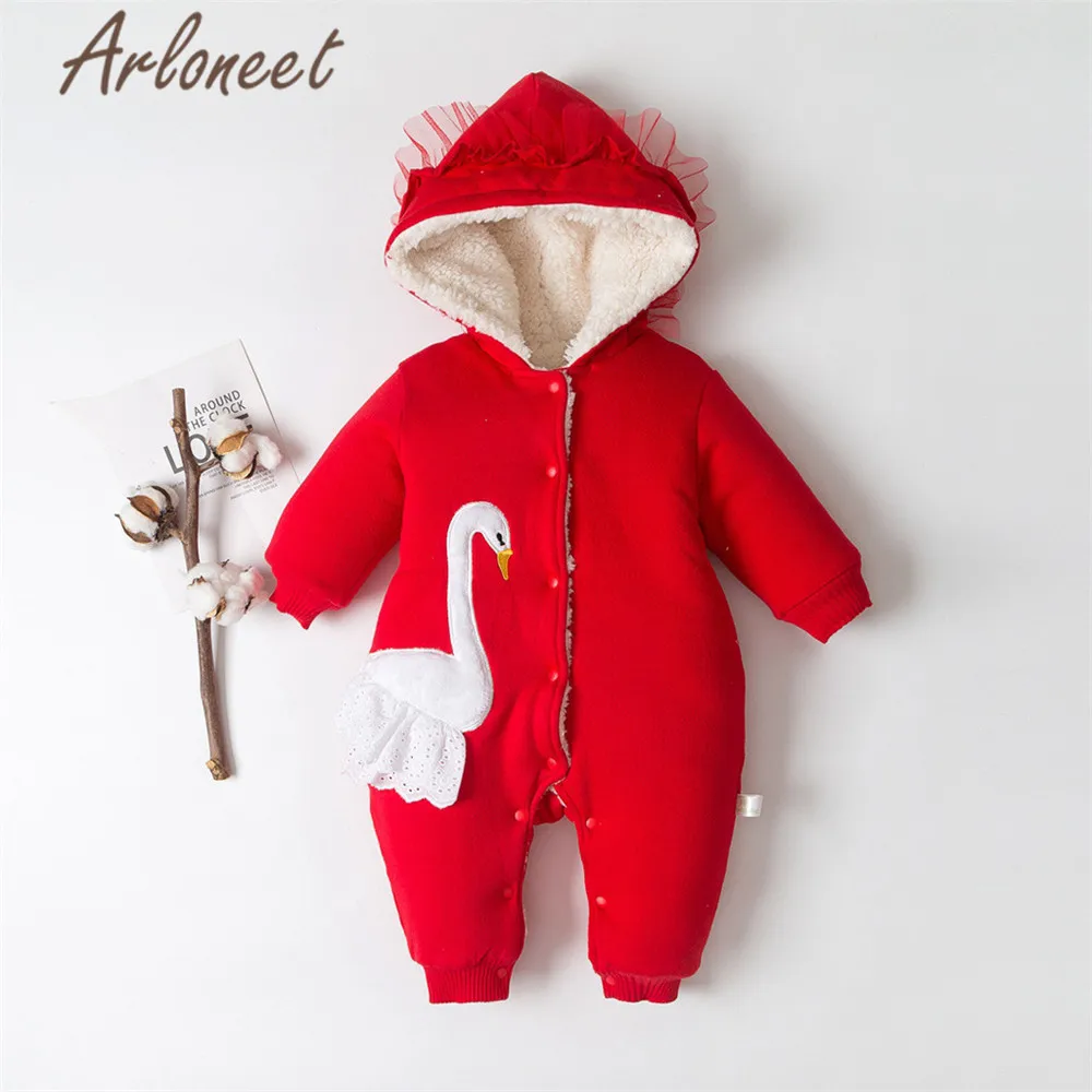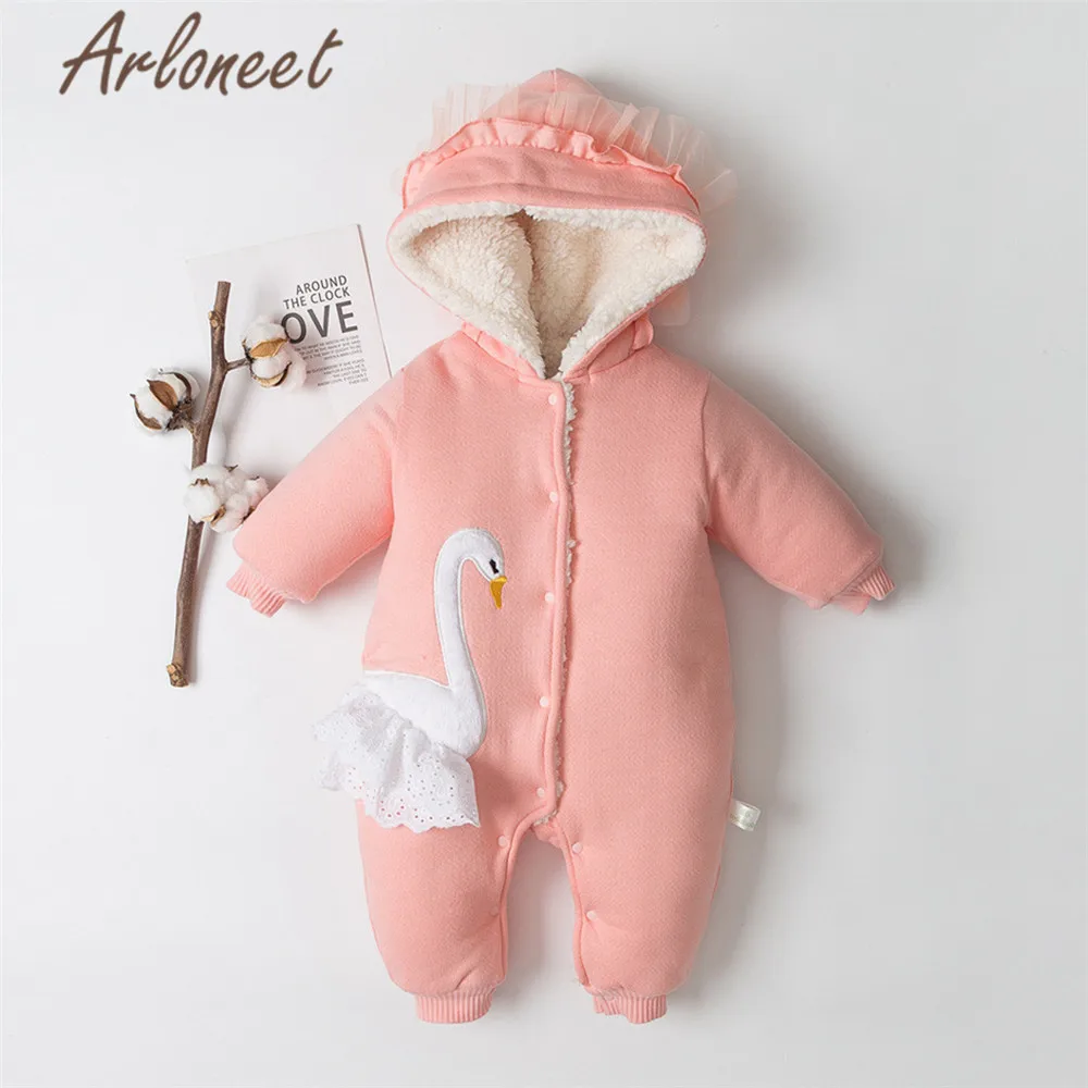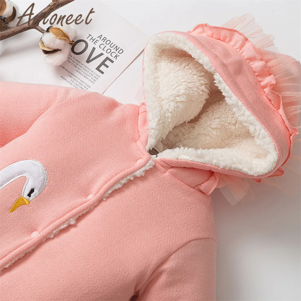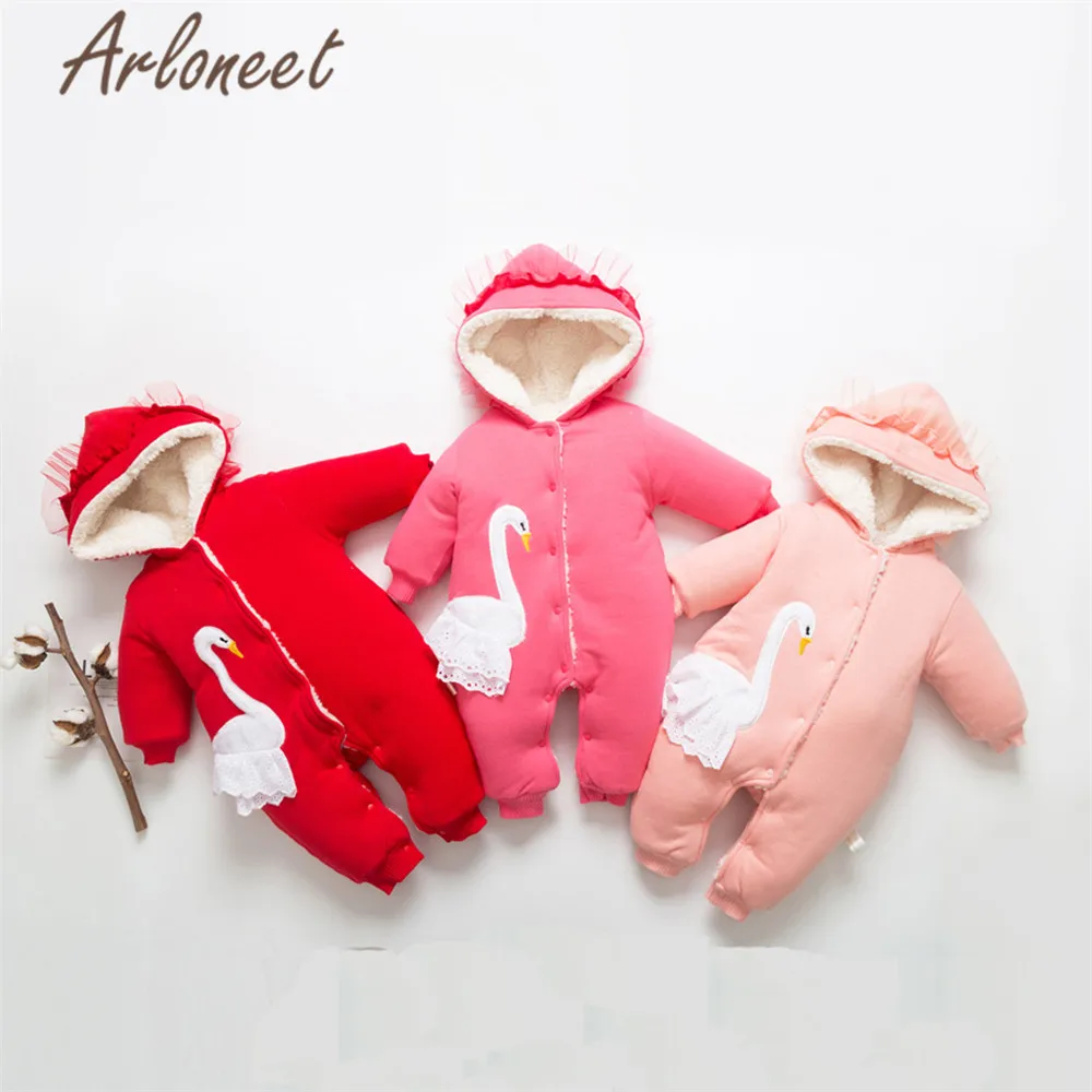 ARLONEET зимняя одежда для маленьких девочек, плотное пальто с рисунком лебедя, комбинезон с капюшоном, верхняя одежда из хлопка, симпатичное Детское пальто, верхняя одежда для девочек