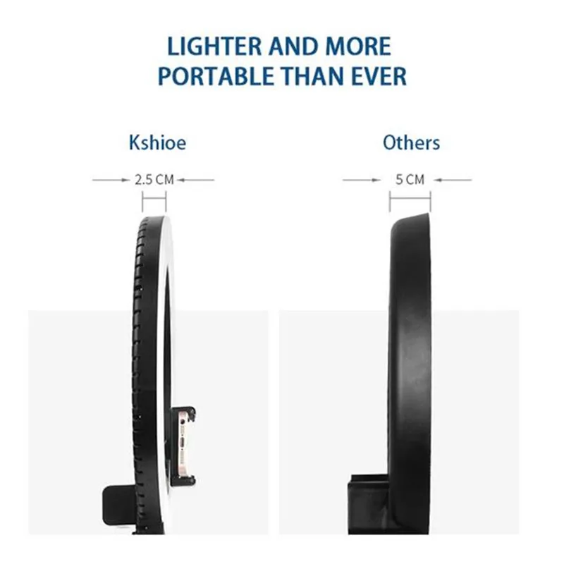 Введение: Как все мы знаем, традиционные лампы накаливания постепенно заменяются новейшим и высокотехнологичным светодиодный кольцевой светильник во многих местах, таких как фотостудия и так далее. Так что сегодня мы хотели бы предложить вам этот Kshioe 12 "светодиодный кольцевой светильник и 2 м осветительные стенды, которые отличаются чрезвычайно долгим сроком службы, низким энергопотреблением, высокой светоотдачей и защитой окружающей среды. И он также покрыт прочным материалом, обеспечивая его полную защиту и идеальное рассеивание тепла. Более того, наш светодиодный кольцевой светильник может дать яркий и чистый свет, чтобы защитить ваши глаза и сделать окружающую среду вокруг вас более романтичной и безопасной. Особенности: 1. Компактный размер, умеренная цена и высокое качество 2. Отсутствие загрязнения, отсутствие инфракрасного и теплового излучения 3. Это своего рода энергосберегающий и высокоэффективный продукт 4. Ультра Энергоэффективная замена стандартной лампы 5. Обеспечивает яркий и мягкий свет, пригодный для фотостудии освещения 6. Легкий, вы можете установить его в течение нескольких минут Технические характеристики: 1. Бренд: Kshioe 2. Светлый цвет подставки: черный 3. Высота осветительной стойки: 2 м 4. Размер света: 12" 5. Тип штекера: стандарт США 6. 2835 ламповых бусин Количество: 240 шт 7. Мощность: 0-36 Вт (регулируется) 8. Двойная Цветовая температура: 2500 K-3200 K; 5200 K-6000 K 9. Входное напряжение: 110-240 В 10. Выходное напряжение: 12 В 3A 11. Общая мощность подсветки: 5800LM 12. Регулировка яркости: Да Посылка включает в себя: 1x12 "черное кольцо света 1x2 м световая подставка (1 шт.); обувь на платформе 1 х держатель для мобильного телефона 1 x сумка