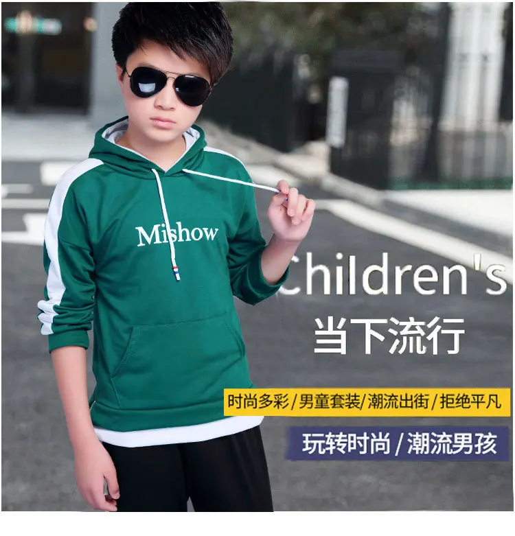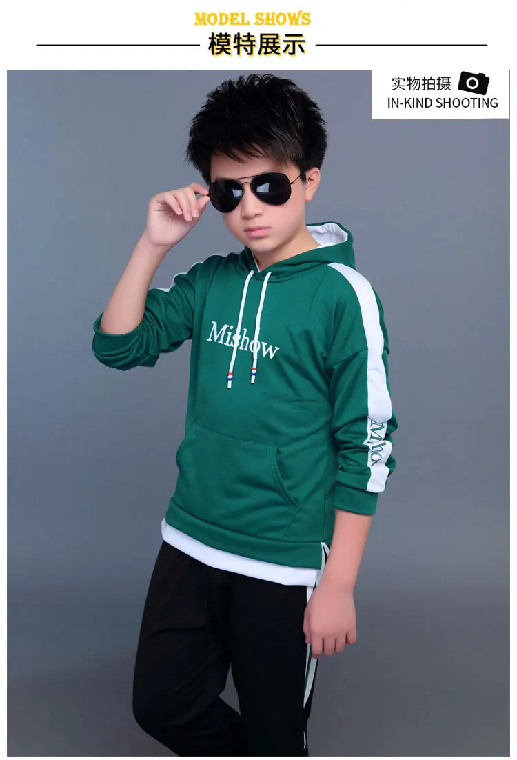 Fashion Letter Kids Sports Suit For Boys Clothes Set Spring Autumn Teen Outfits Long Sleeve Hooded Tops Pant 2pcs Child Clothing