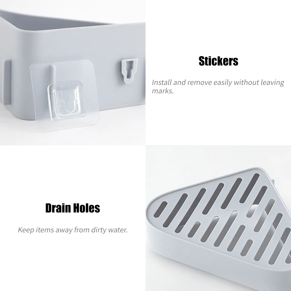 [Сливные отверстия]Открытая конструкция дна позволяет воде быстро сливать, угловая полка будет держать ваши предметы вдали от грязной воды.