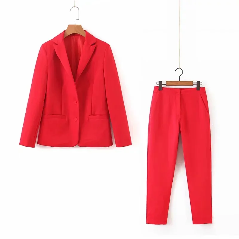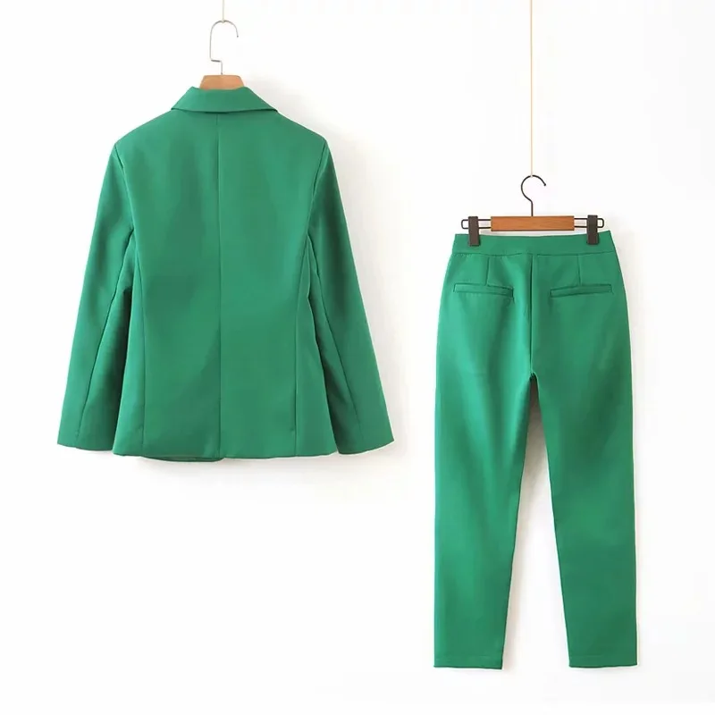 Темперамент Женский костюм зеленый костюм из двух предметов 2019 новый тонкий однобортный Блейзер модные брюки костюм офисный комплект красный зеленый
