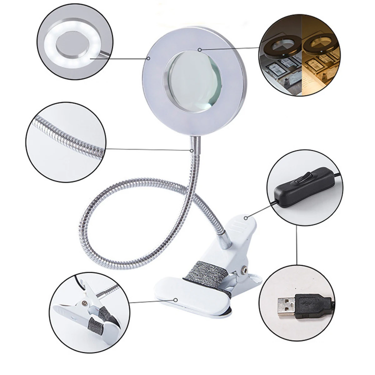 Зажим для настольного чтения 8X увеличительная лампа с зажимом
