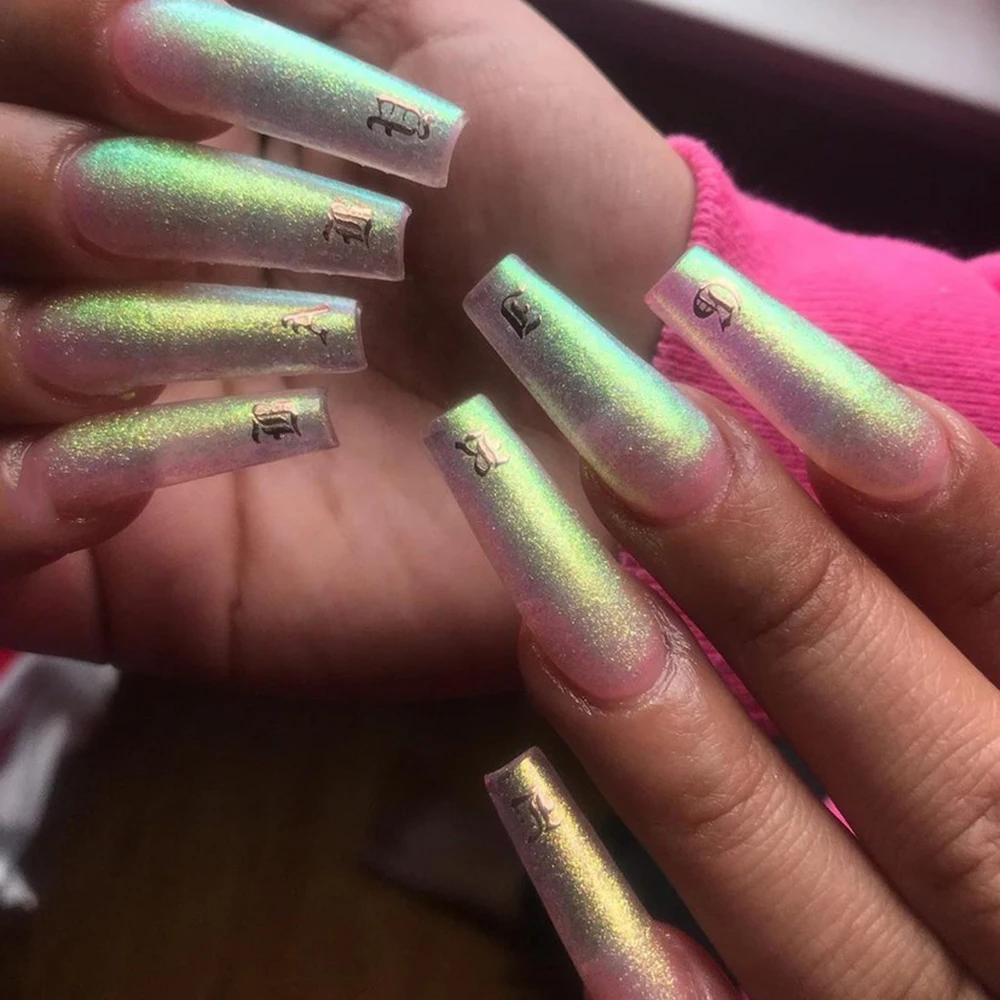 Название продукта: Голографическая фольга для ногтей с пламенем, 26 букв, клейкая лента Стиль: Доступно 10 стилей Цвет: как на изображении Количество: 1/5 листов Посылка: 1/5 шт 3D наклейки для ногтей