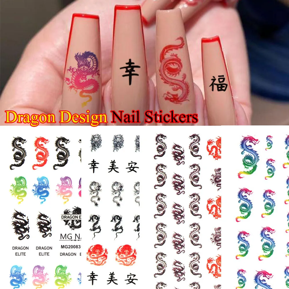 1/5 штук, 10 видов, Стиль голографическая пламени, украшен китайским драконом для ногтей Фольга Стикеры 26 древних буквы клейкая лента наклейка с языками пламени украшения для ногтей