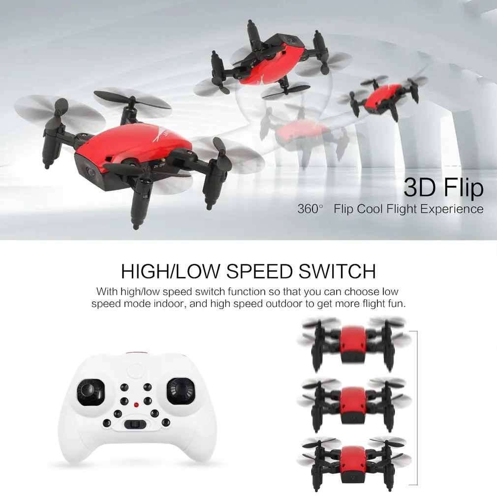 Складной мини Радиоуправляемый Дрон S9 без камеры беспилотные летательные аппараты Безголовый H/L переключатель скорости Дрон с светильник удержание высоты дистанционное управление Квадрокоптер Описание: Особенности: Складная: маленький размер и светильник вес, он может быть складной и помещаются в ладони, легко носить с собой. Безголовый режим: в безголовом режиме Дрон будет лететь в направлении джойстика, независимо от головки дрона. Легко управлять. Возврат одной кнопкой: этот самолет восстанавливает точное место, из которого он взлетел. Где бы он ни летал, нажмите кнопку, чтобы вернуть его обратно домой. 3D Flip: Просто нажмите кнопку 3D rolling на передатчике, и вы получите 360 градусов flip для идеального действия и отличной производительности. Переключатель скорости H/L: различная скорость s приносит вам различный опыт полета, вы можете выбрать низкоскоростной режим в помещении, высокая скорость на открытом воздухе. Вам легче справиться с этим. Возможны некоторые отклонения из-за ручного измерения. Информация о посылка: Примечание: Внимание к аккумулятору: Посылка: