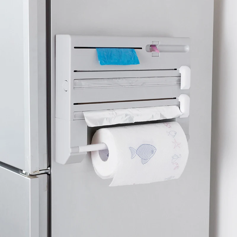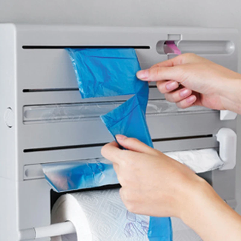 2. Функция: этот настенный держатель для бумажного полотенца отлично подходит для хранения бумажного полотенца, пластиковой обертки, алюминиевой фольги, мусорного мешка и хранения некоторых кухонных аксессуаров.