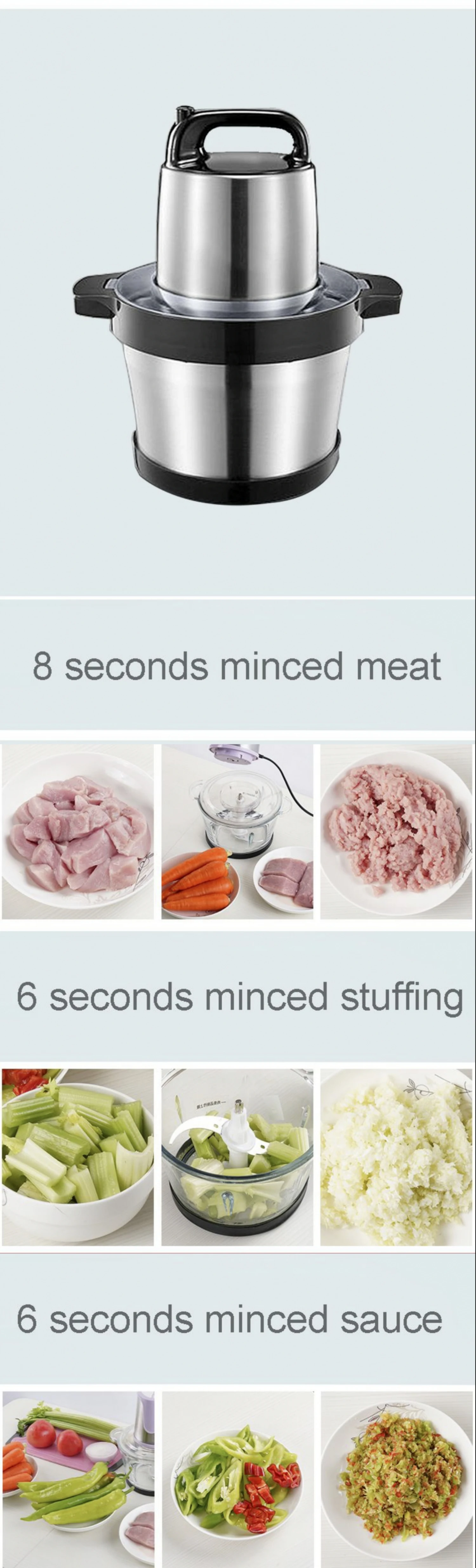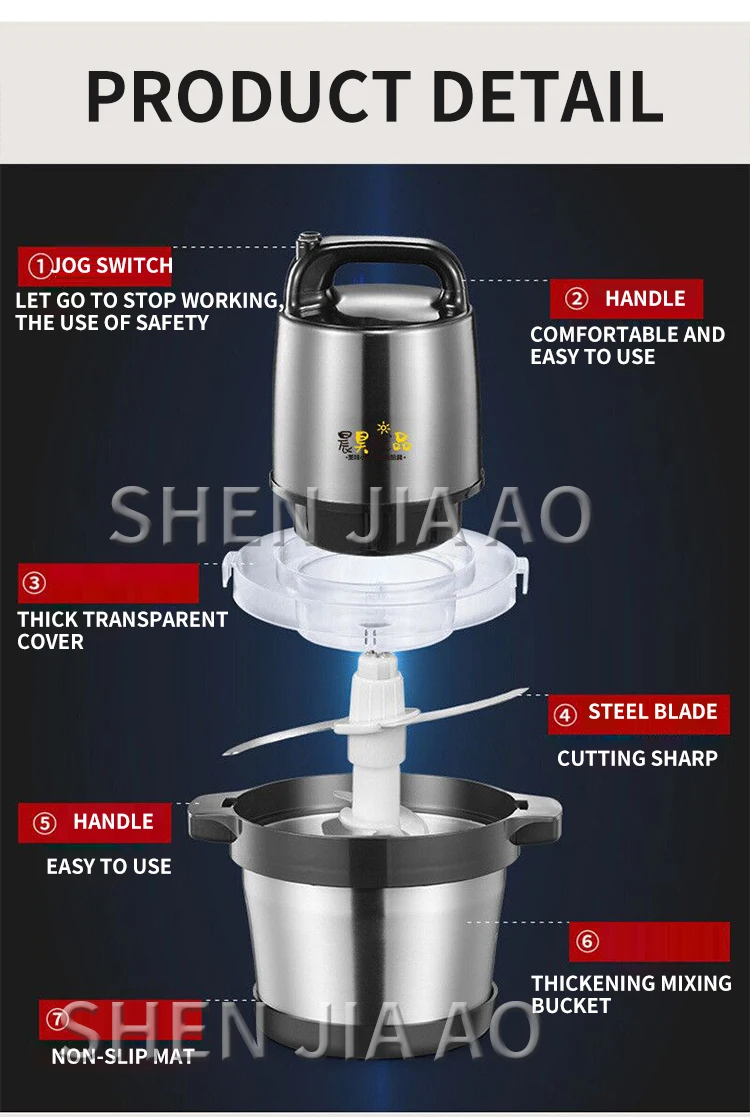 Наименование: мясорубкаМодель: NSS-006Мощность: 1000 ВтЕмкость: 6 лНапряжение: 220 ВЧастота: 50 ГцМатериал: нержавеющая сталь 304Вес нетто: 3 кгРазмер: 360*290*230 ммДемонстрация товара: