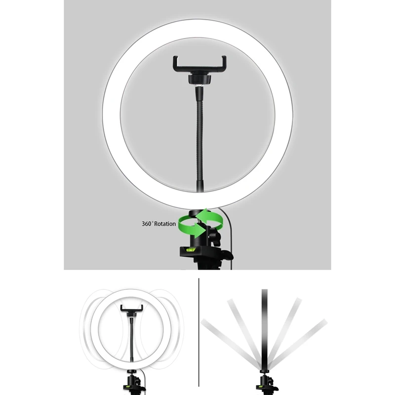 (Мульти-функциональный) 2-в-1 дизайн сочетает в себе держатель телефона и selfie ring светильник вместе, это профессиональный инструмент для создания видео в реальном времени/запись со смартфона или компьютера. Идеальный дополнительный светильник для макияжа, потоковой передачи в реальном времени, съемки Селфи, съемок, видеозаписи, онлайн-обучения, темных пейзажей и т. Д.