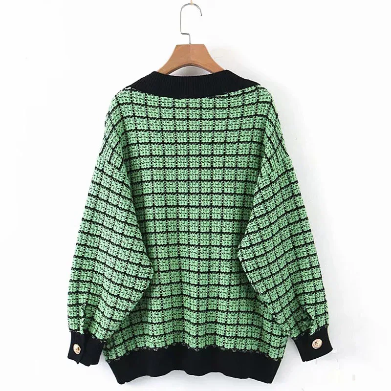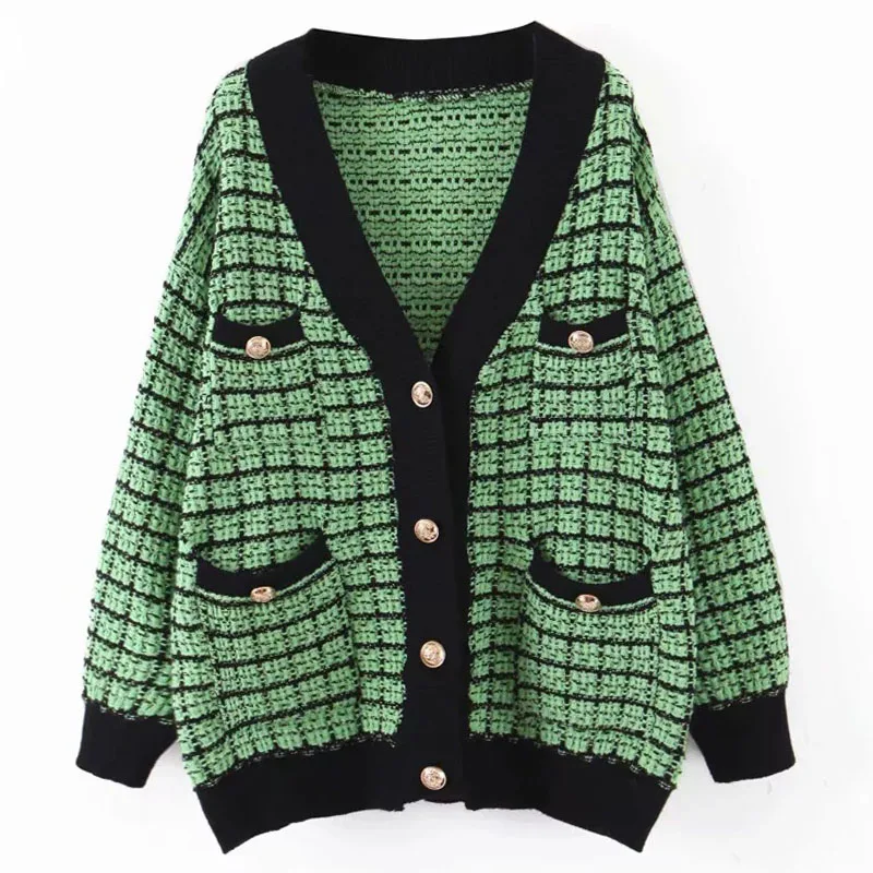 Elegant Plaid Knitted Sweaters with 4 pockets